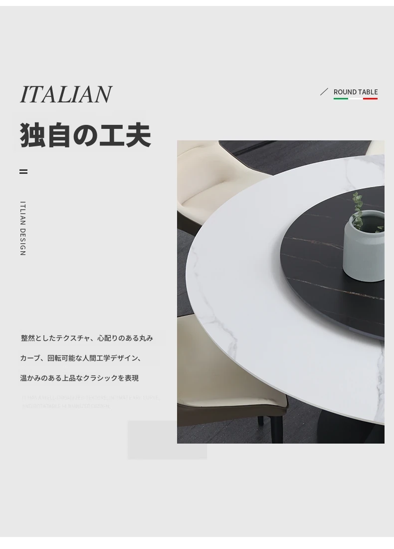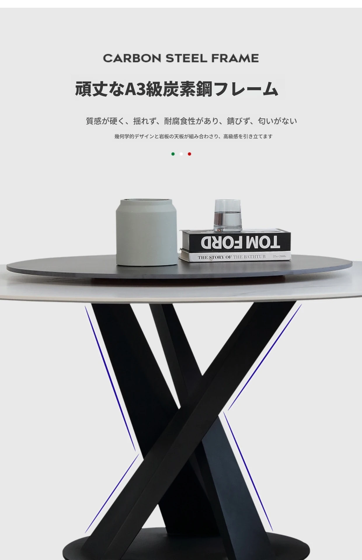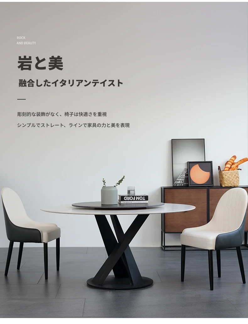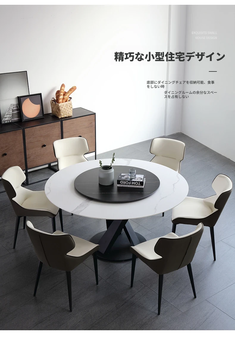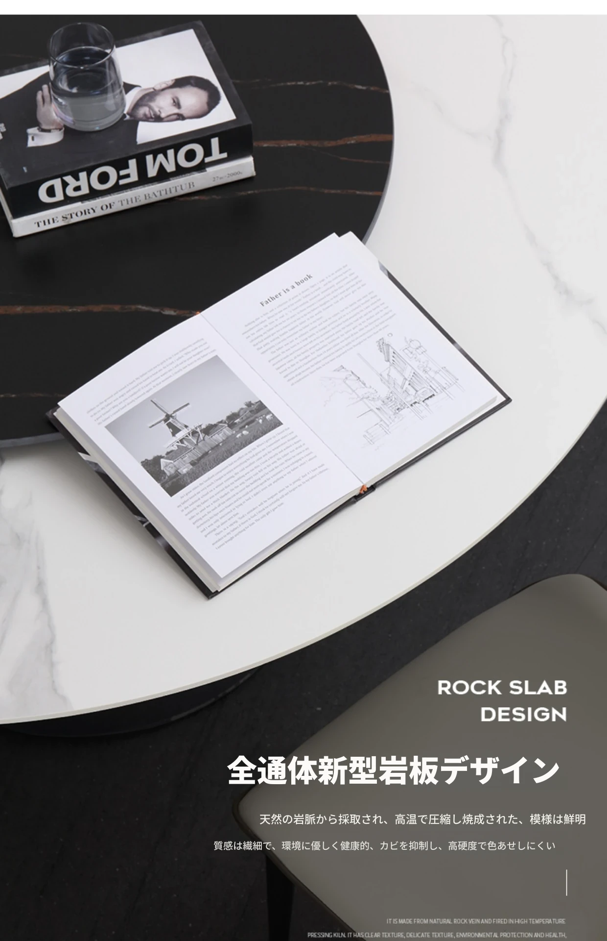 モダンでシンプルなラウンドテーブル、軽やかな贅沢感を演出!小さなお部屋にぴったりな岩板製ダイニングテーブル&チェアセット。家族や友人との素敵なひとときをお楽しみください!