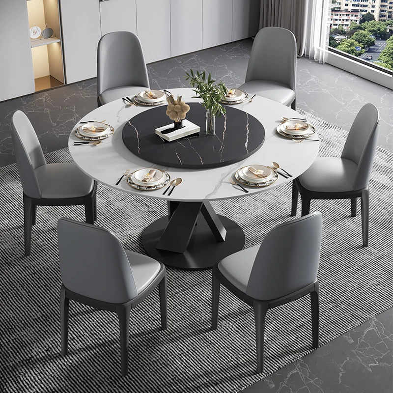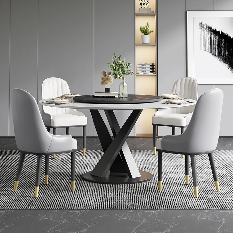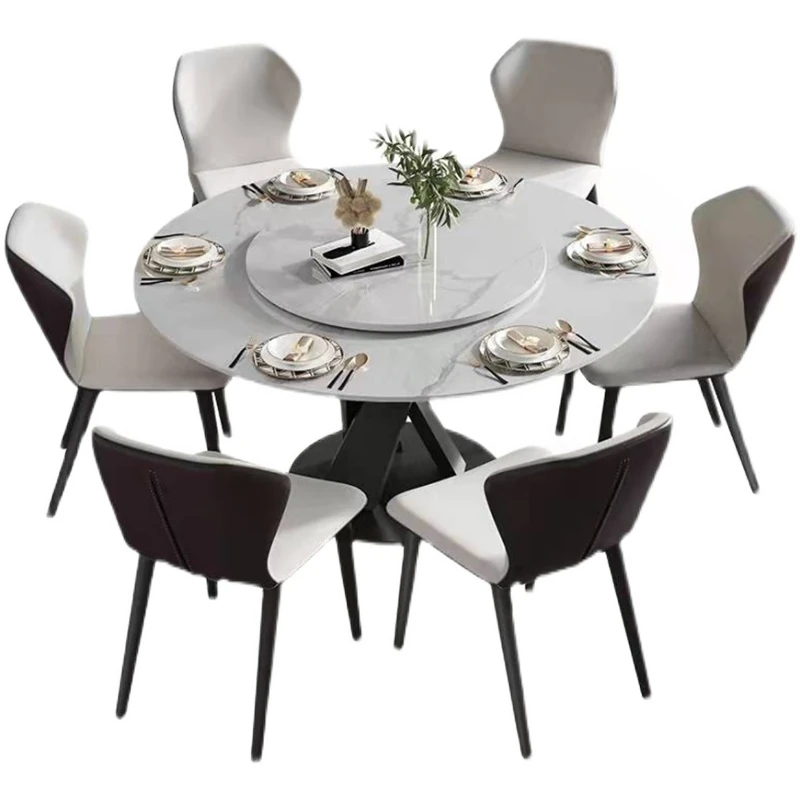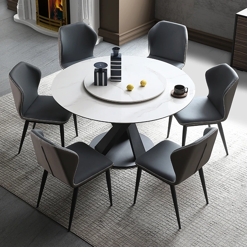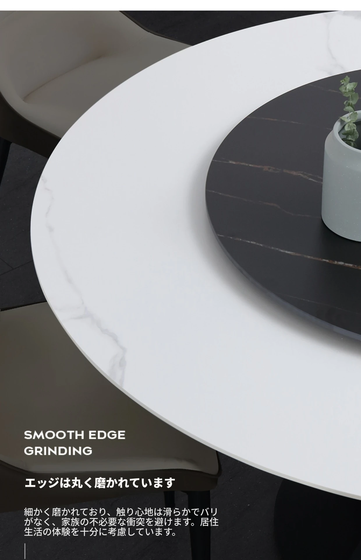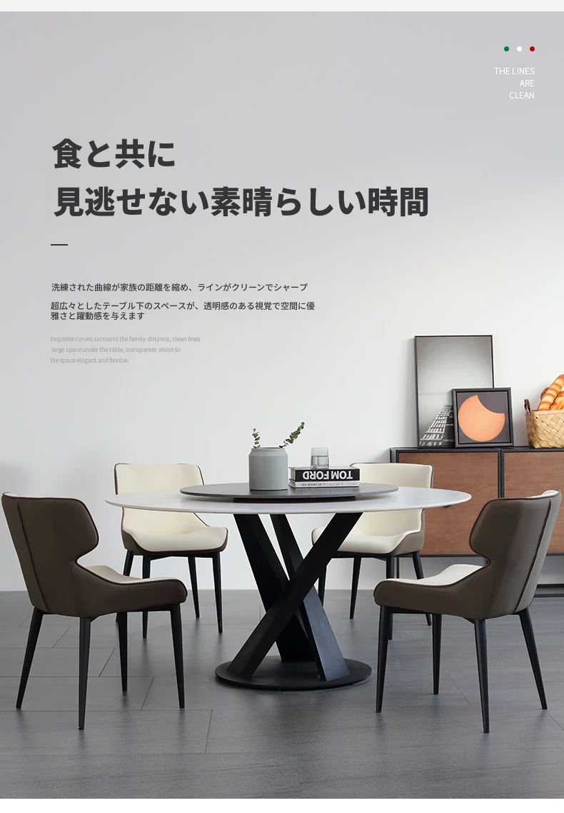 モダンでシンプルなラウンドテーブル、軽やかな贅沢感を演出!小さなお部屋にぴったりな岩板製ダイニングテーブル&チェアセット。家族や友人との素敵なひとときをお楽しみください!