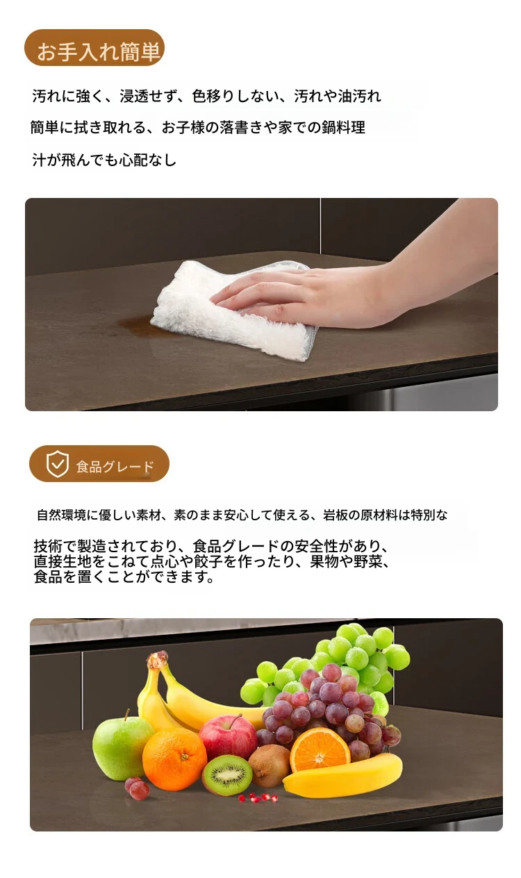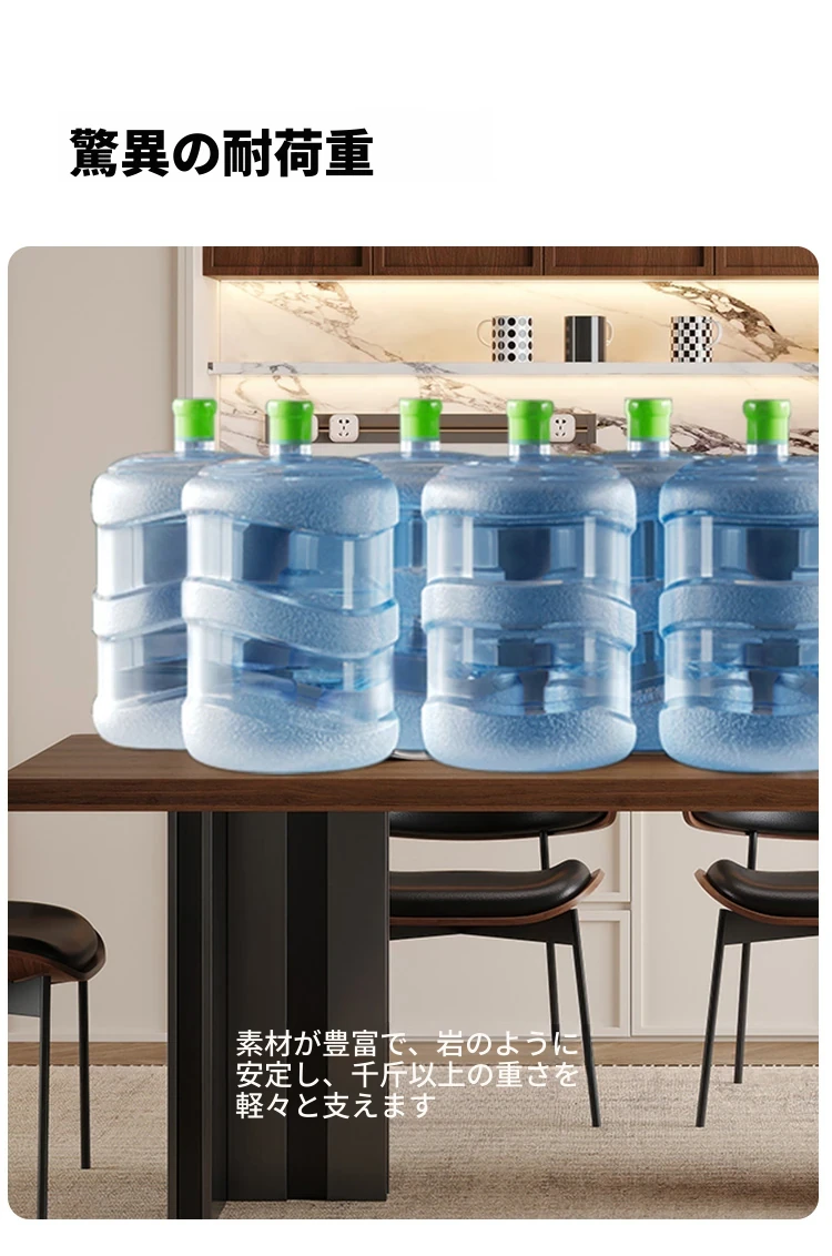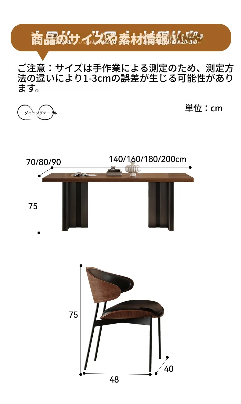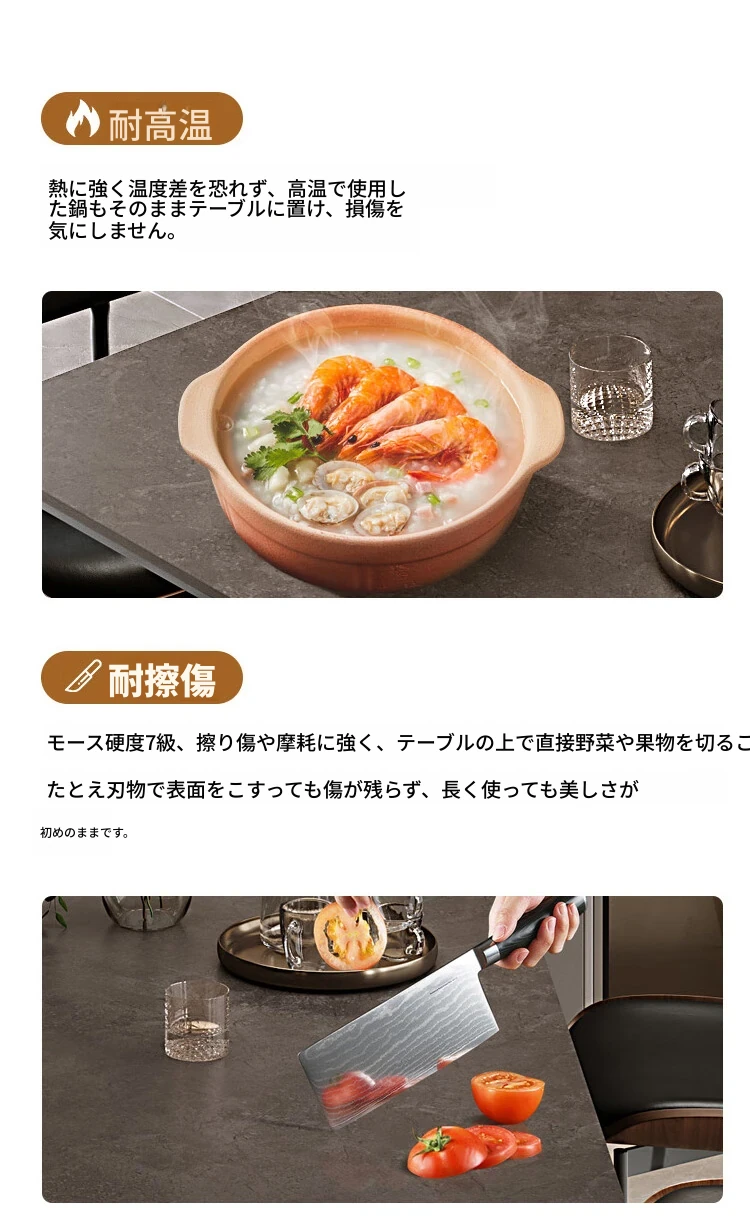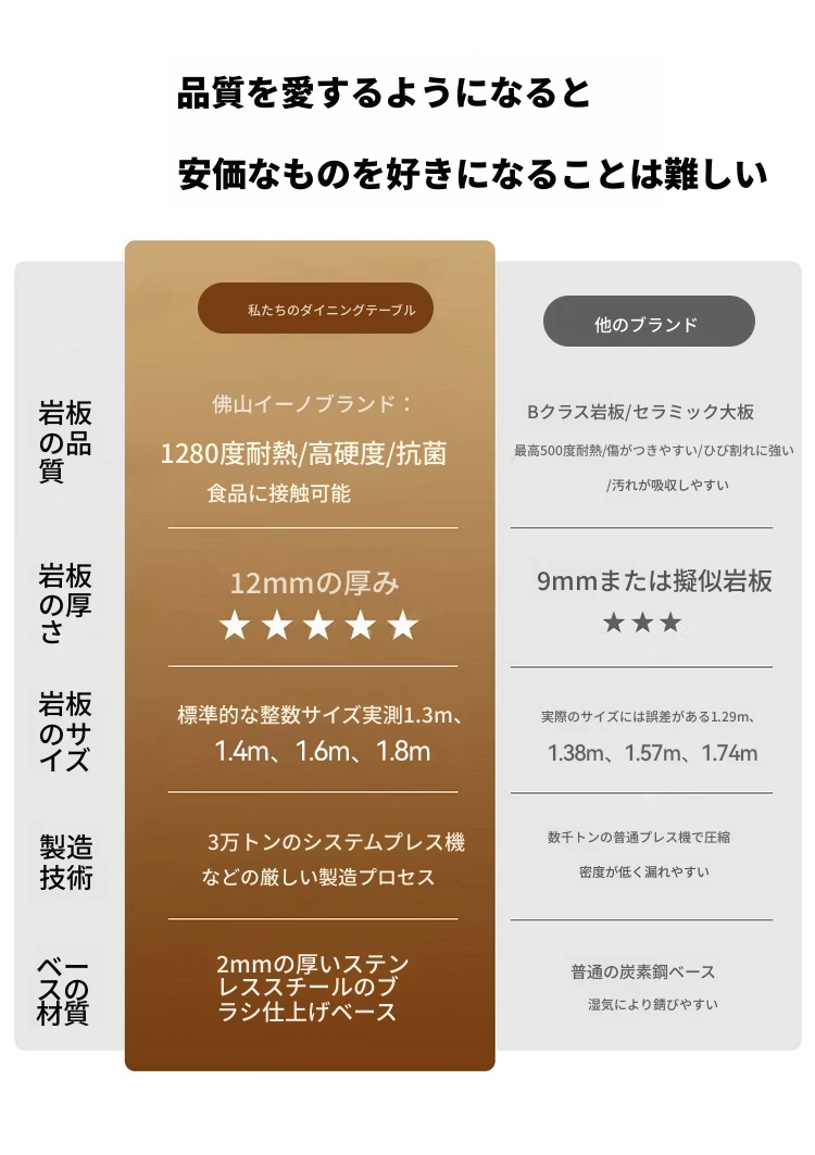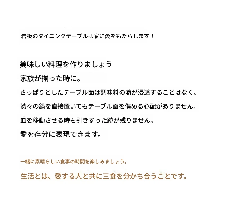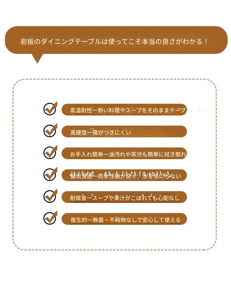 シンプルでモダンな侘寂スタイルのレトロな下掛けウォールナット色の厚手岩板ダイニングテーブルセット – 木目調の長方形デザインで、美しい食卓を演出!