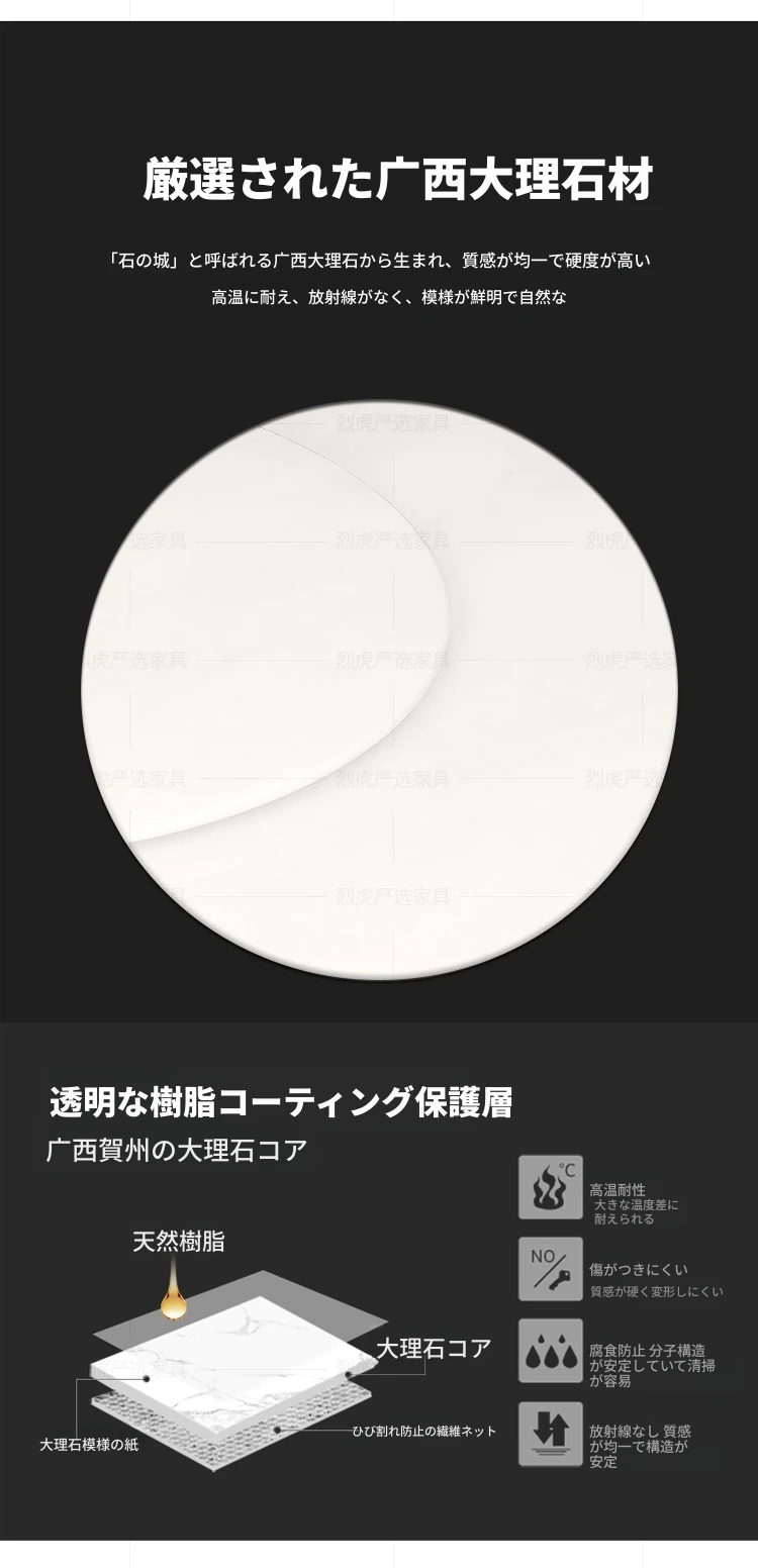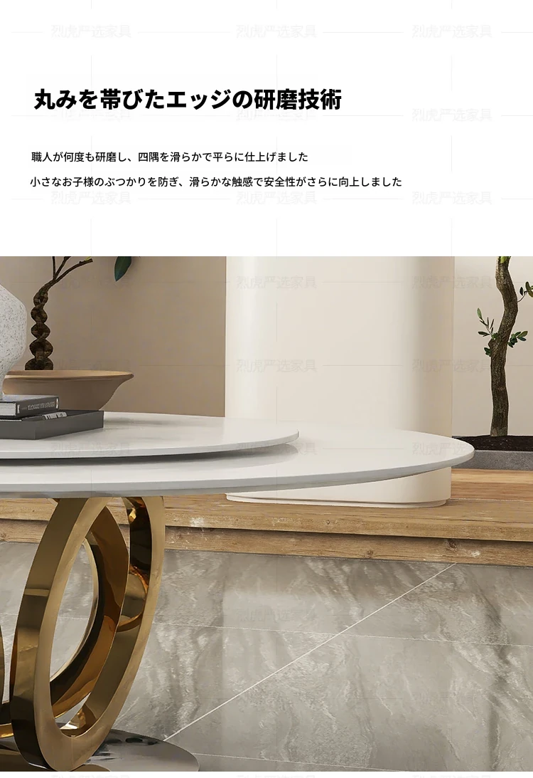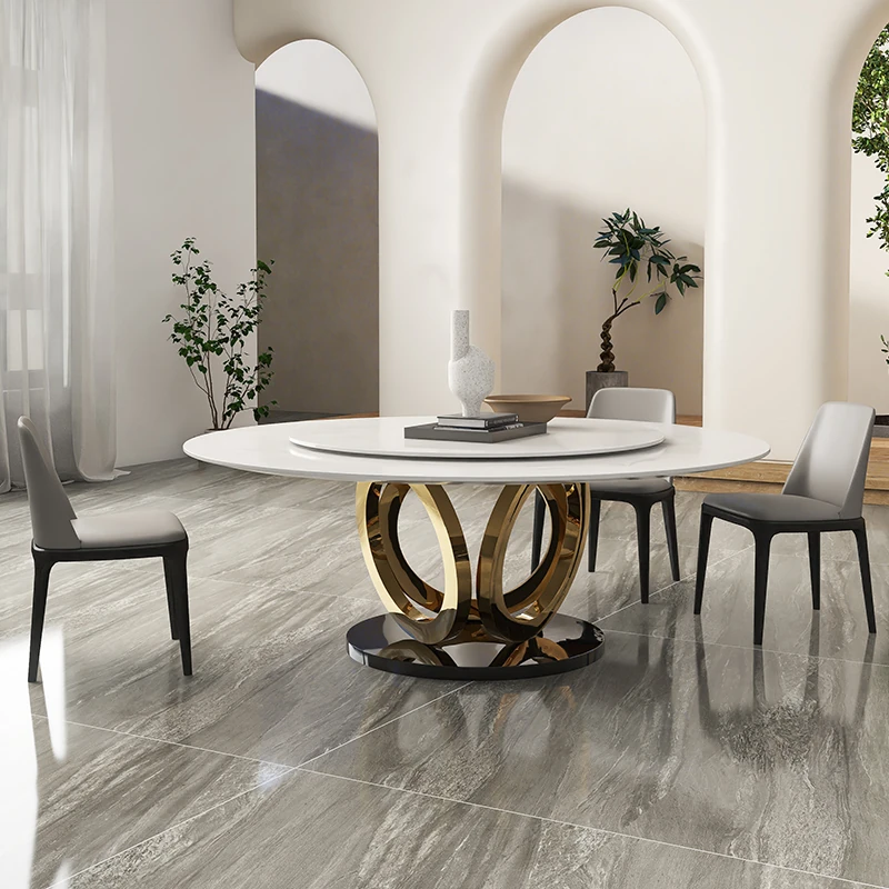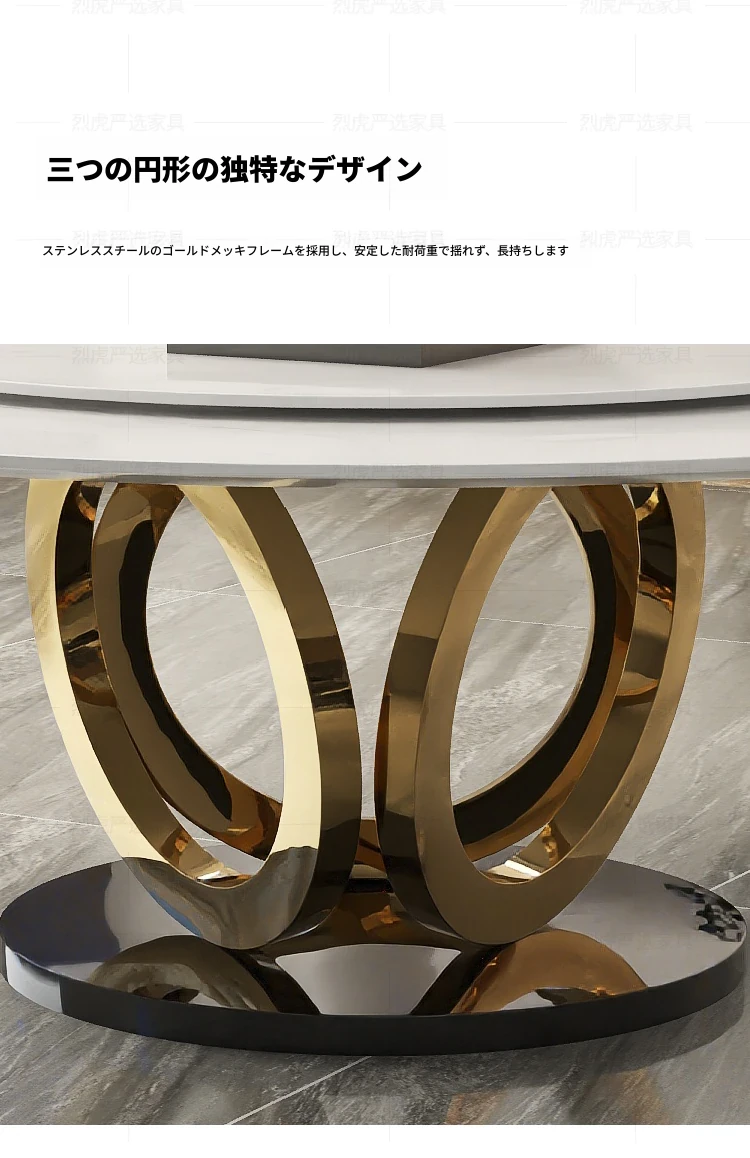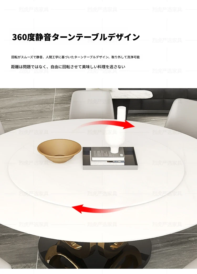 モダンデザインの大理石円形ダイニングテーブル - 回転式付きで便利!広々としたリビングにぴったりな大サイズ、椅子との組み合わせで家族団らんのひとときを演出します。電動機能付きで使いやすさ抜群!
