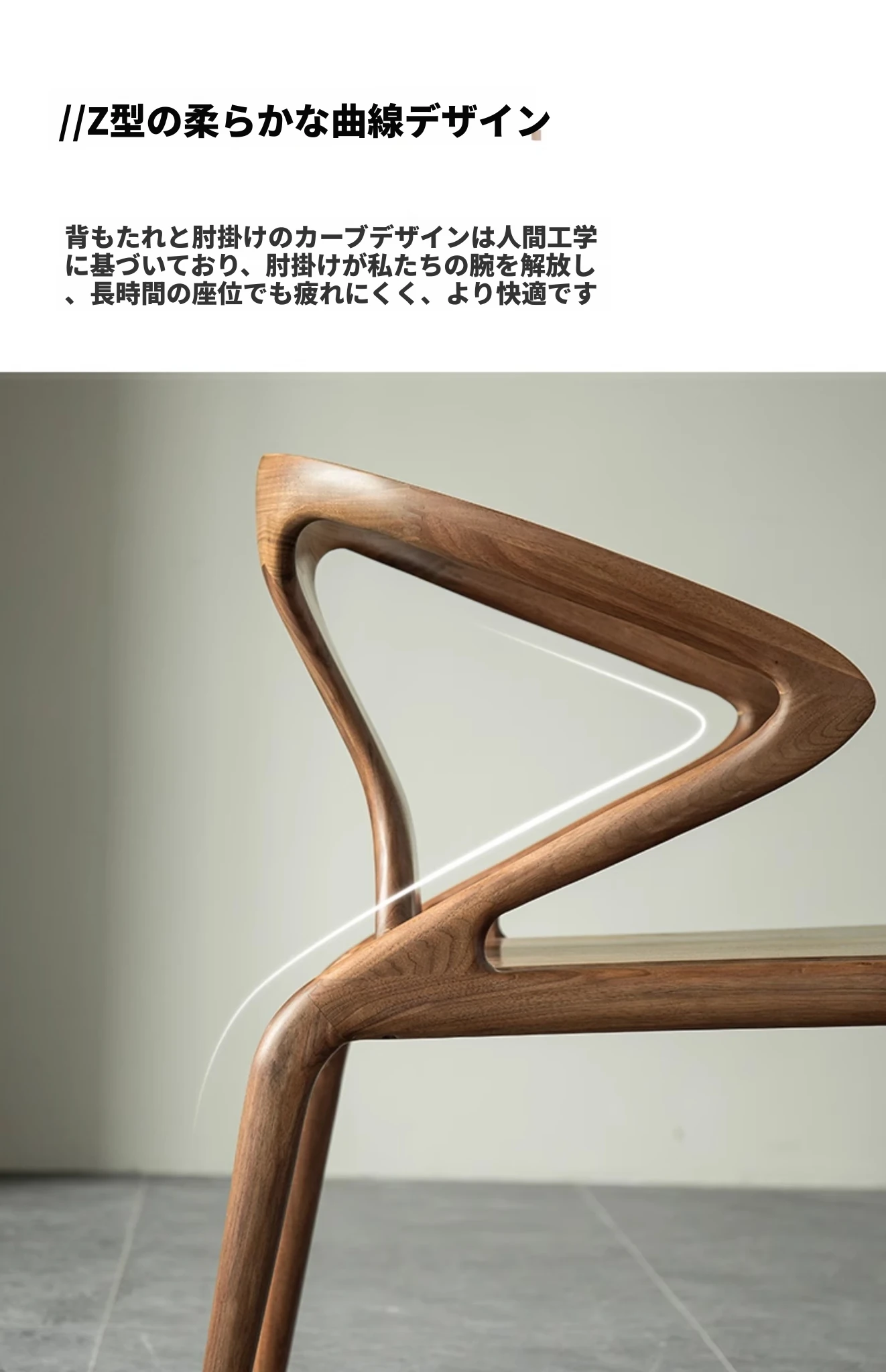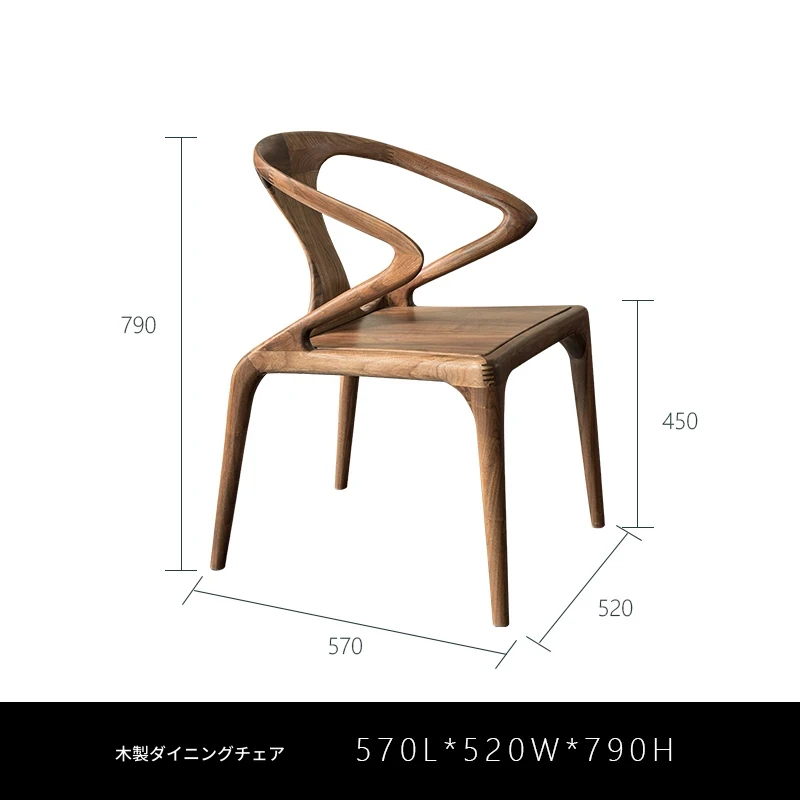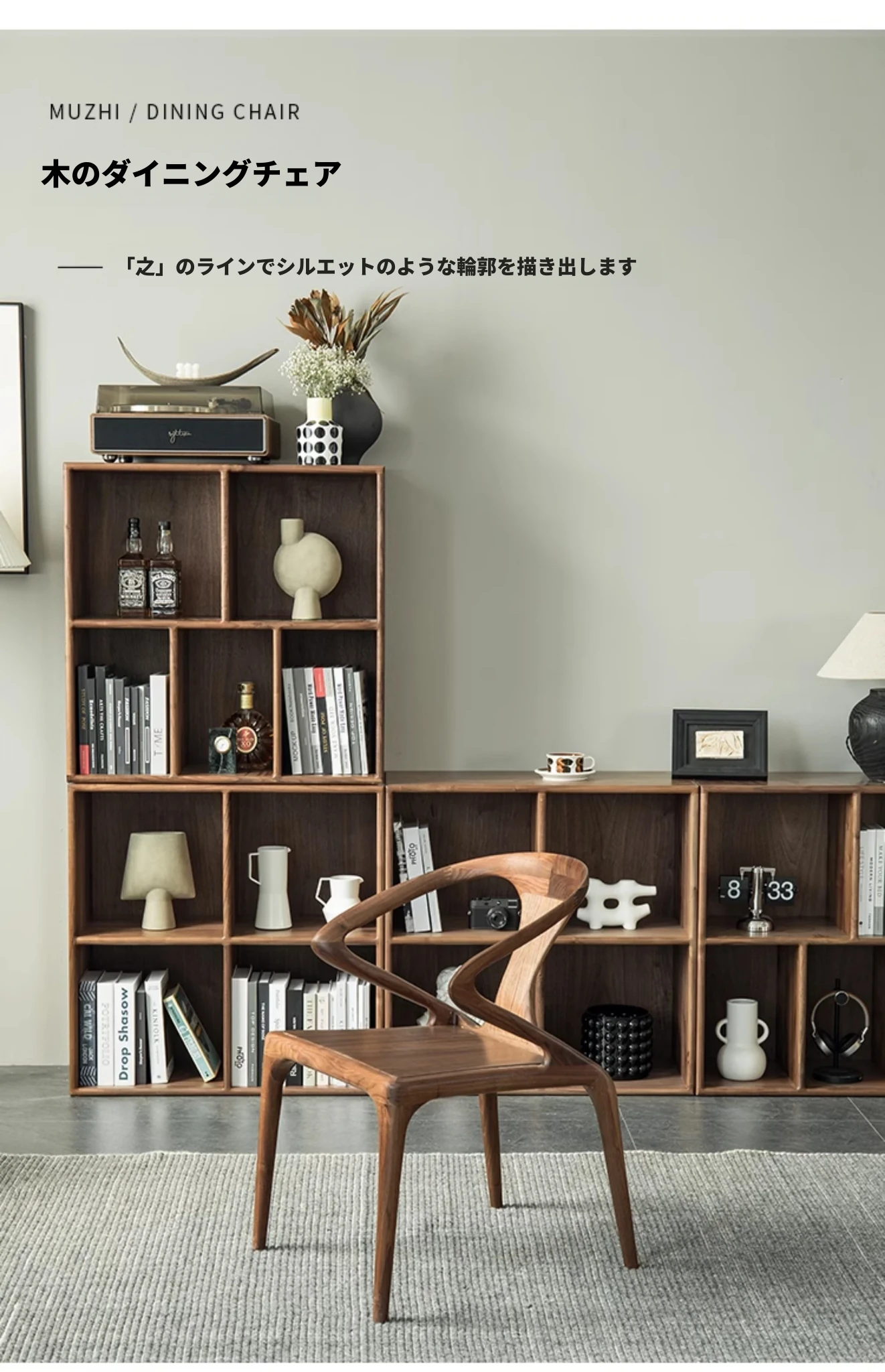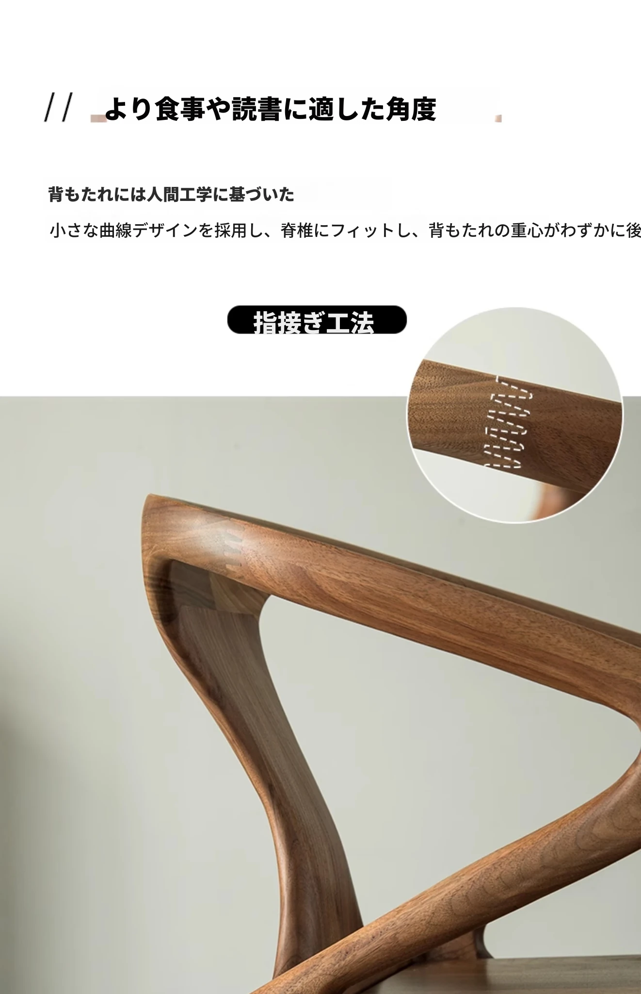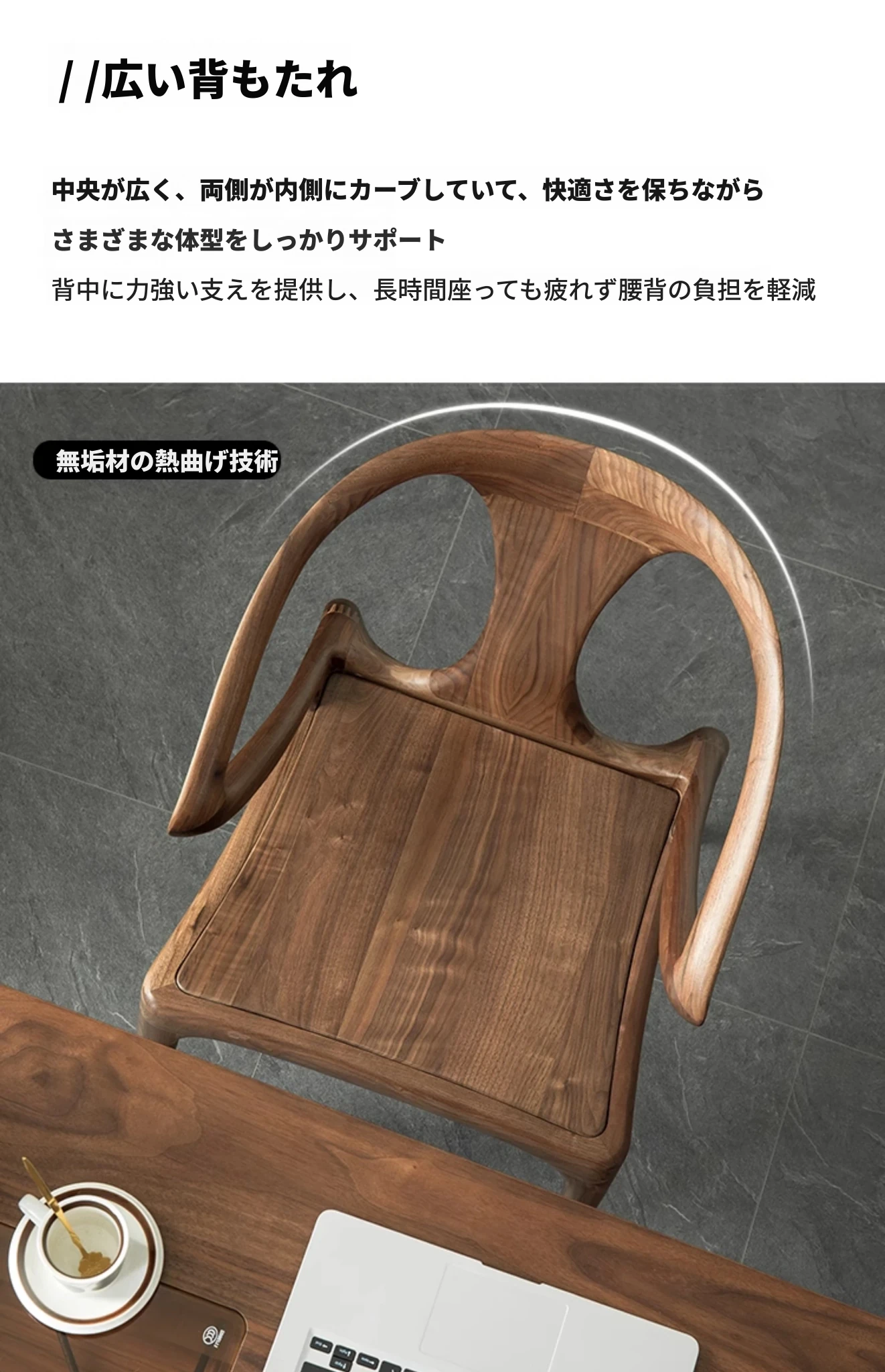 北米産ブラックウォールナットの全木製ダイニングチェア - モダンでシンプルなデザイン、上質な本革使用のリラックスチェア。おしゃれな書斎やリビングに最適な主役椅子!