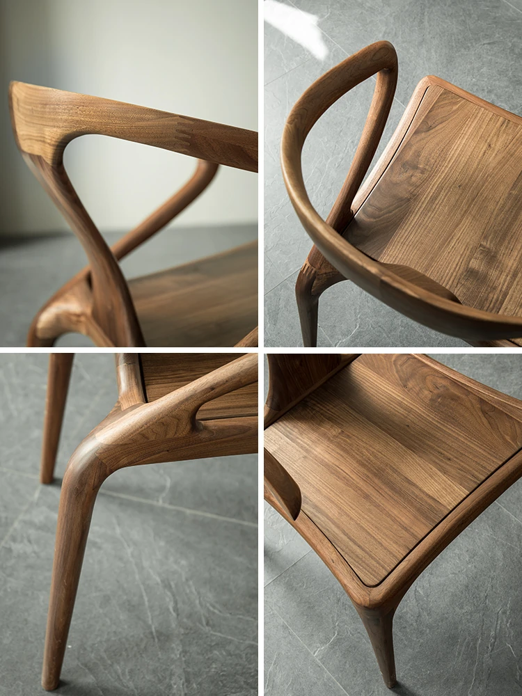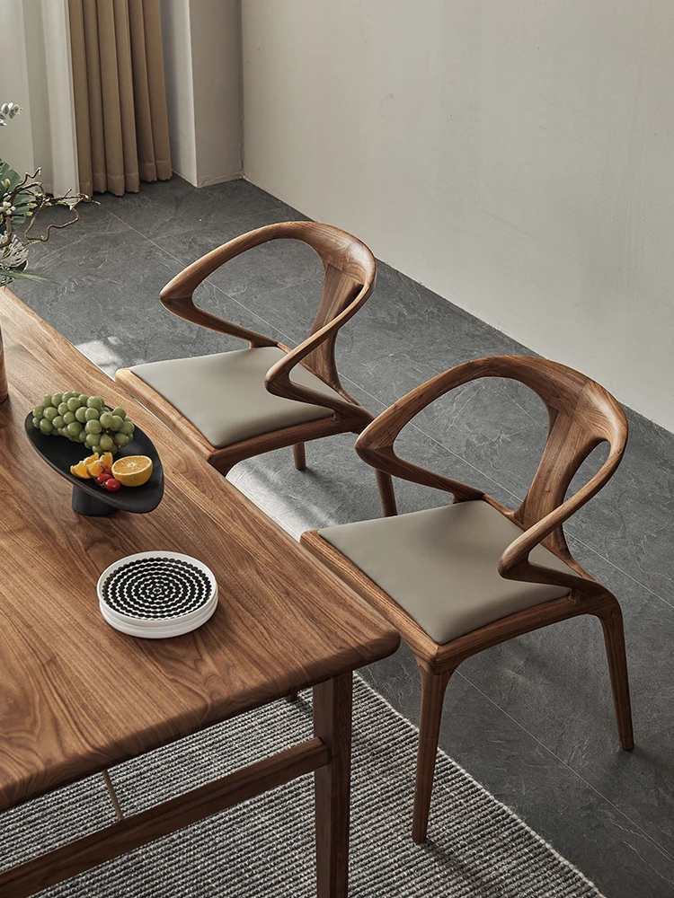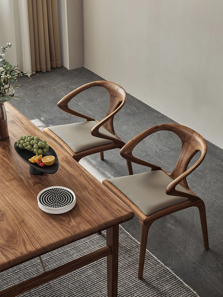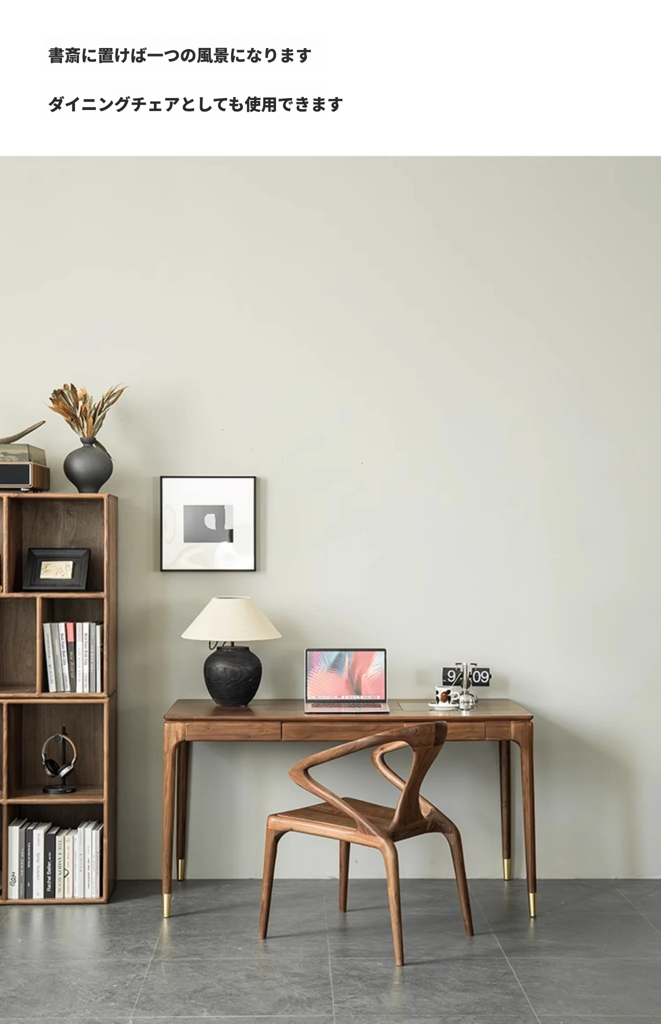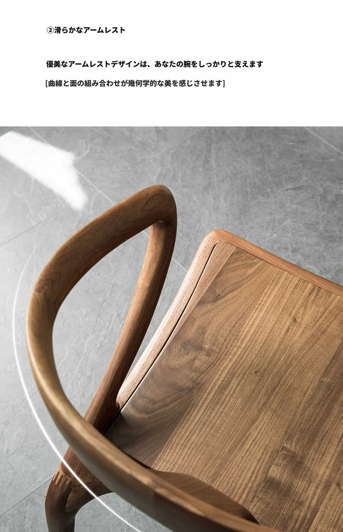 北米産ブラックウォールナットの全木製ダイニングチェア - モダンでシンプルなデザイン、上質な本革使用のリラックスチェア。おしゃれな書斎やリビングに最適な主役椅子!