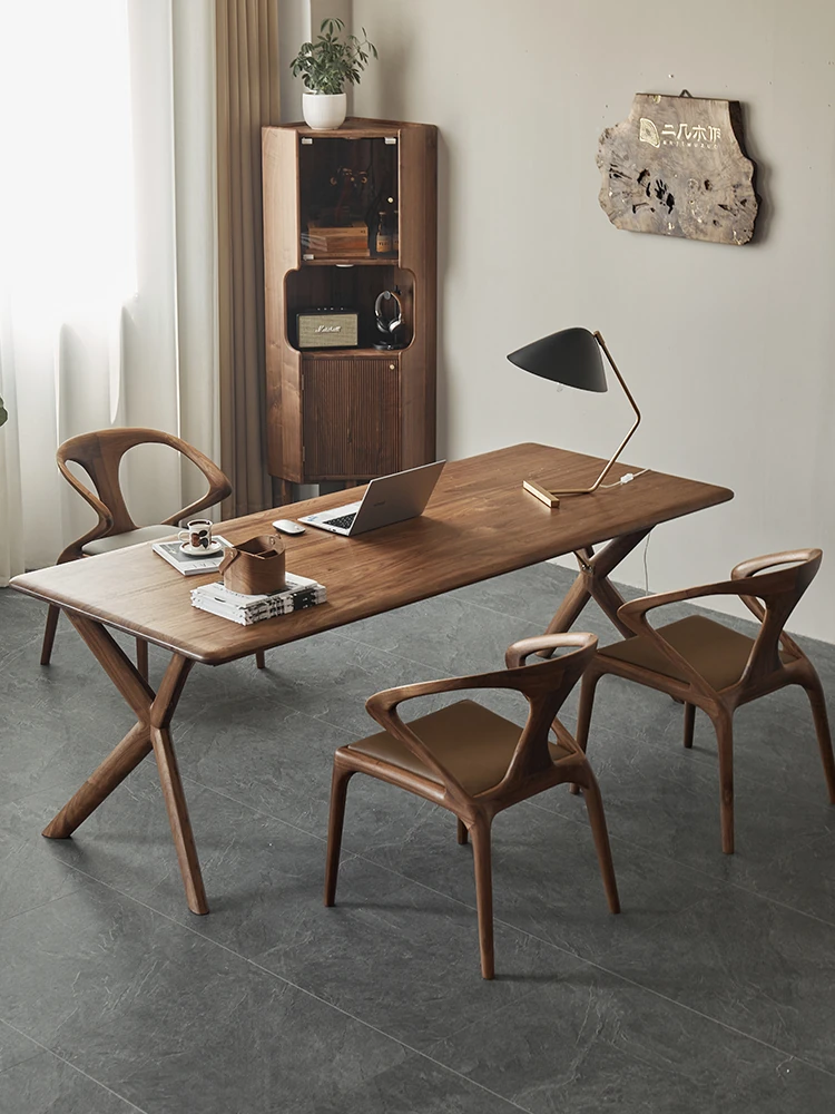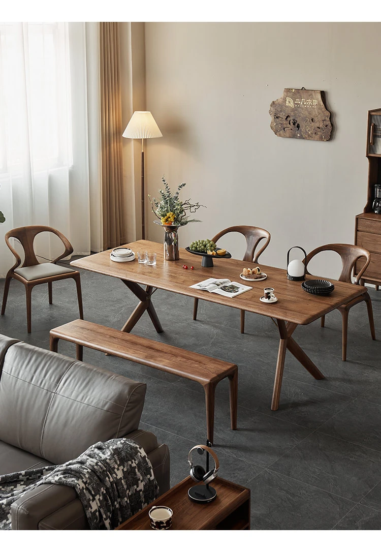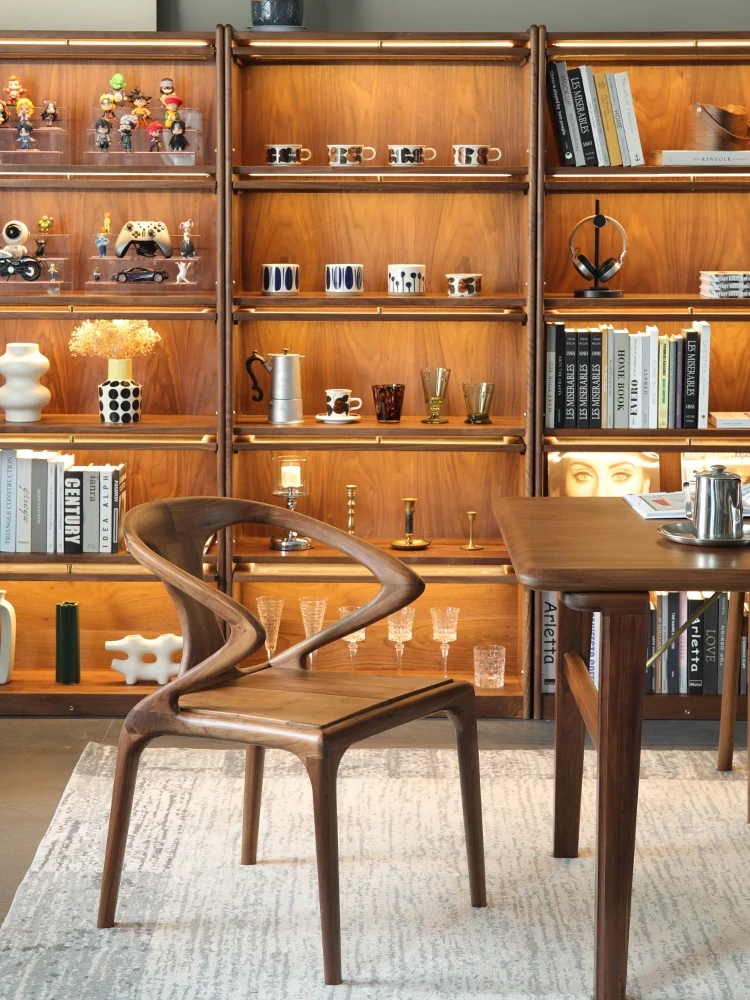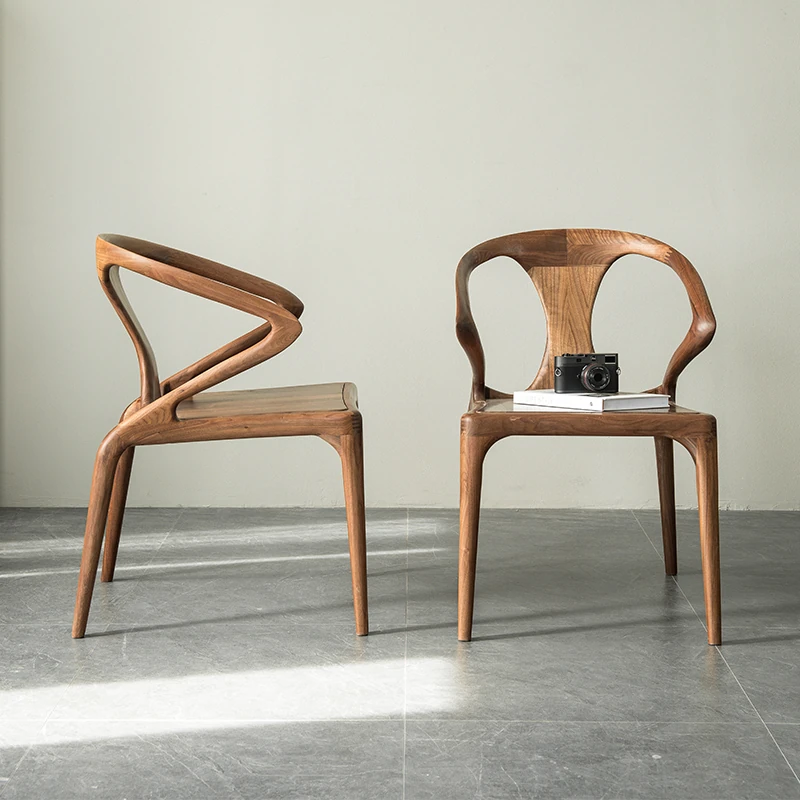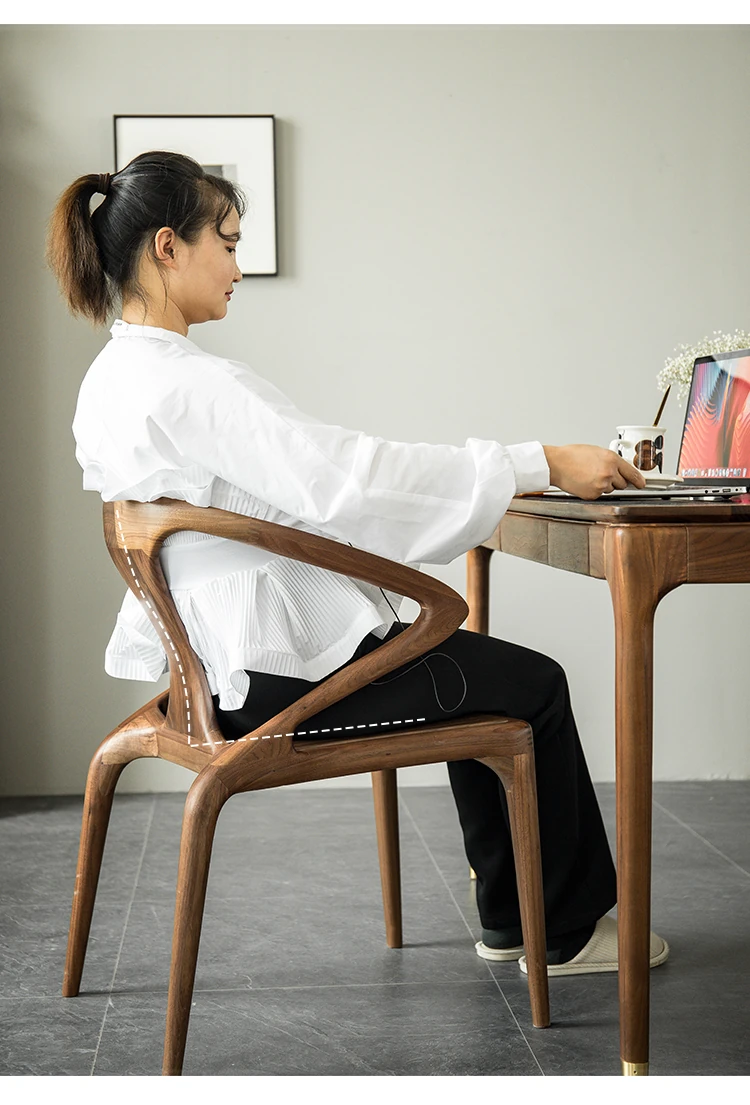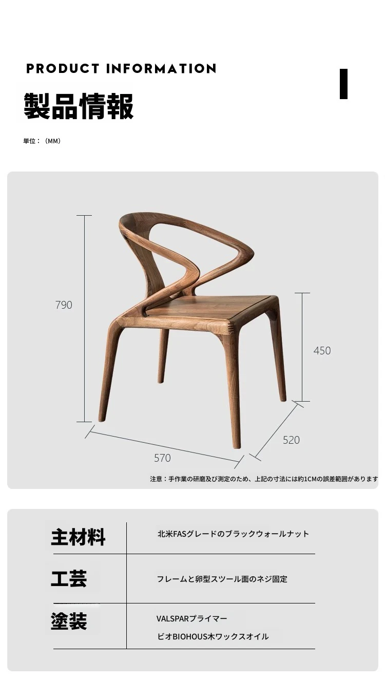 北米産ブラックウォールナットの全木製ダイニングチェア - モダンでシンプルなデザイン、上質な本革使用のリラックスチェア。おしゃれな書斎やリビングに最適な主役椅子!