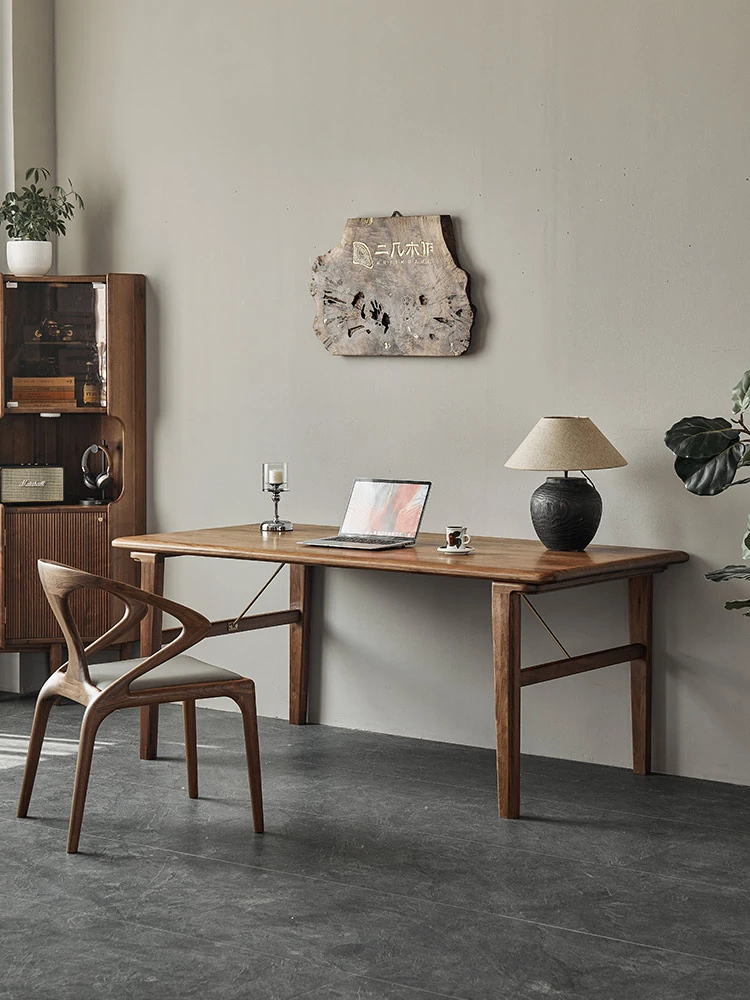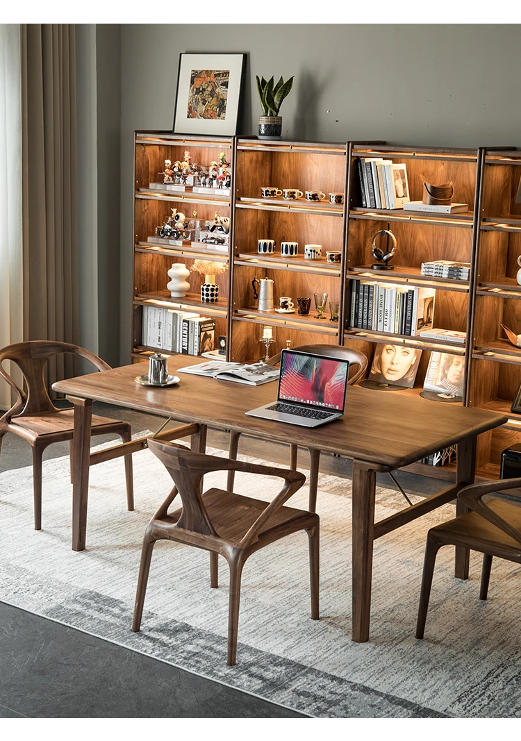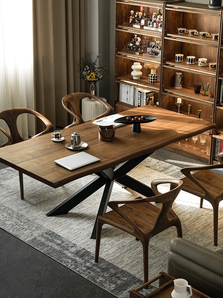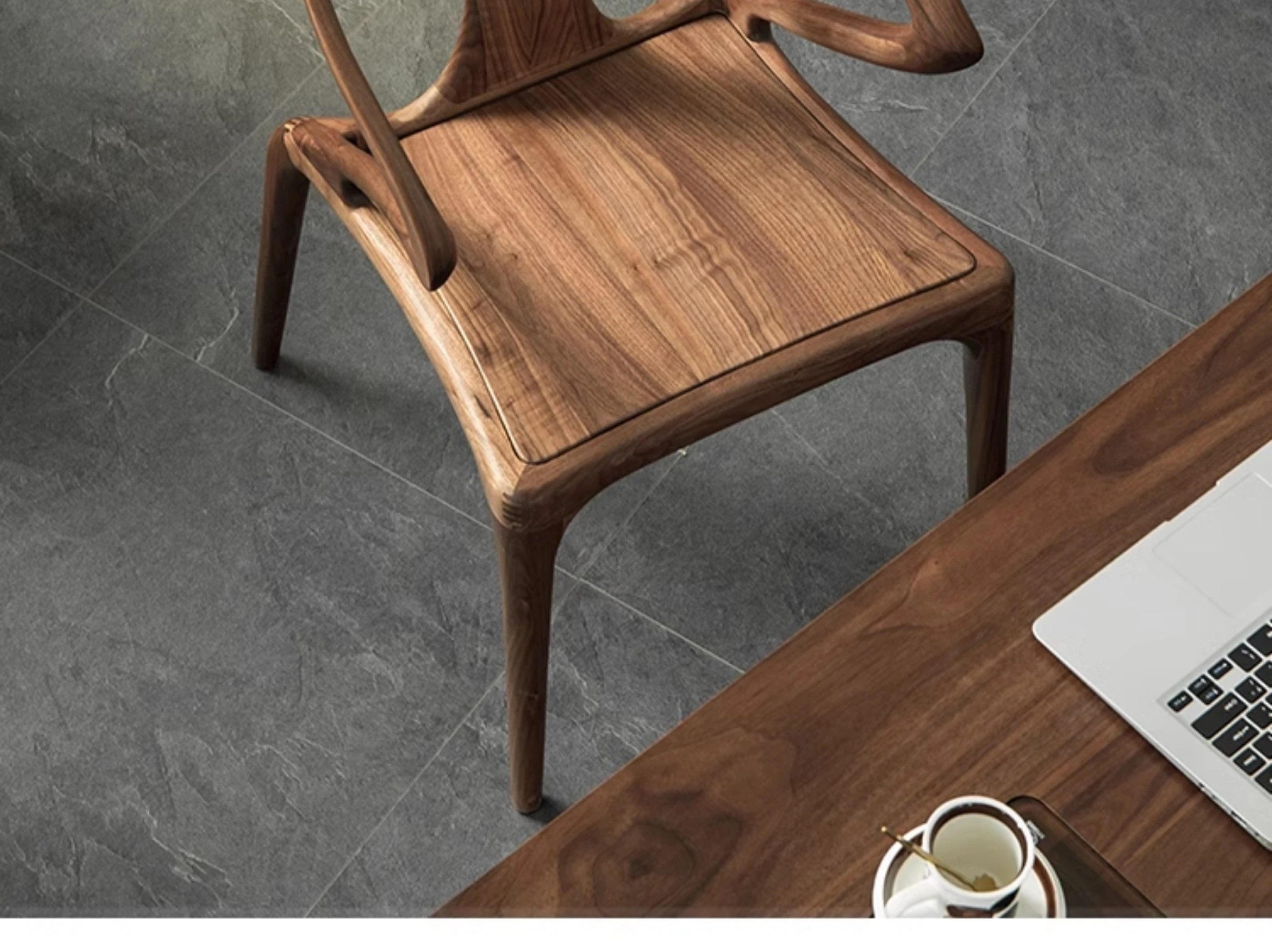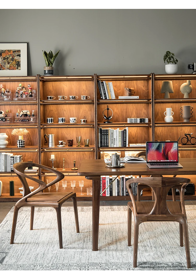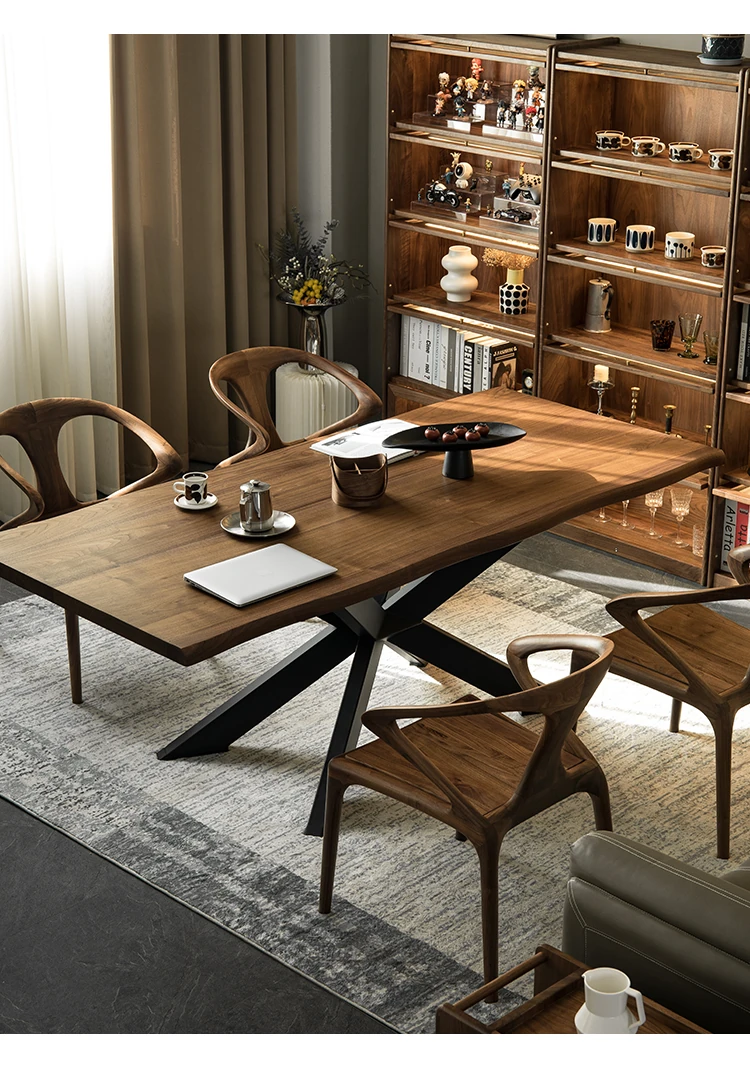 北米産ブラックウォールナットの全木製ダイニングチェア - モダンでシンプルなデザイン、上質な本革使用のリラックスチェア。おしゃれな書斎やリビングに最適な主役椅子!