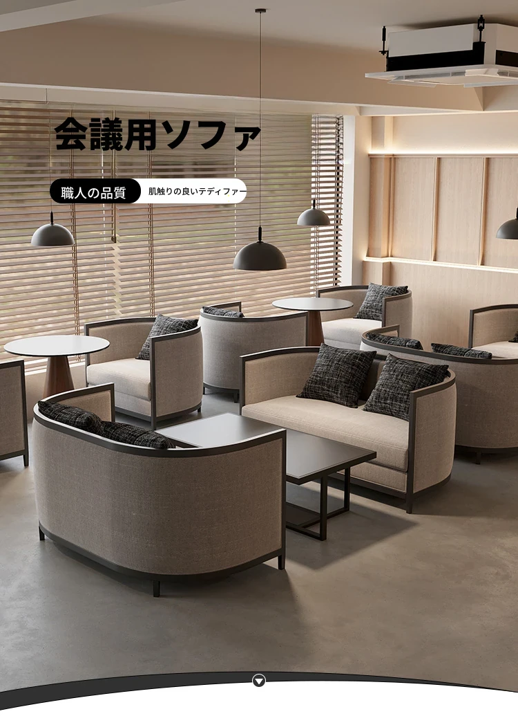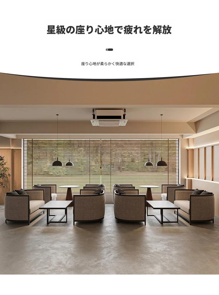 新中式デザインの販売センター用ソファセット - ホテルの茶室やロビーに最適!お客様との大切なひとときを演出する、快適な接客・休憩スペース用のテーブル&椅子コンビネーション。