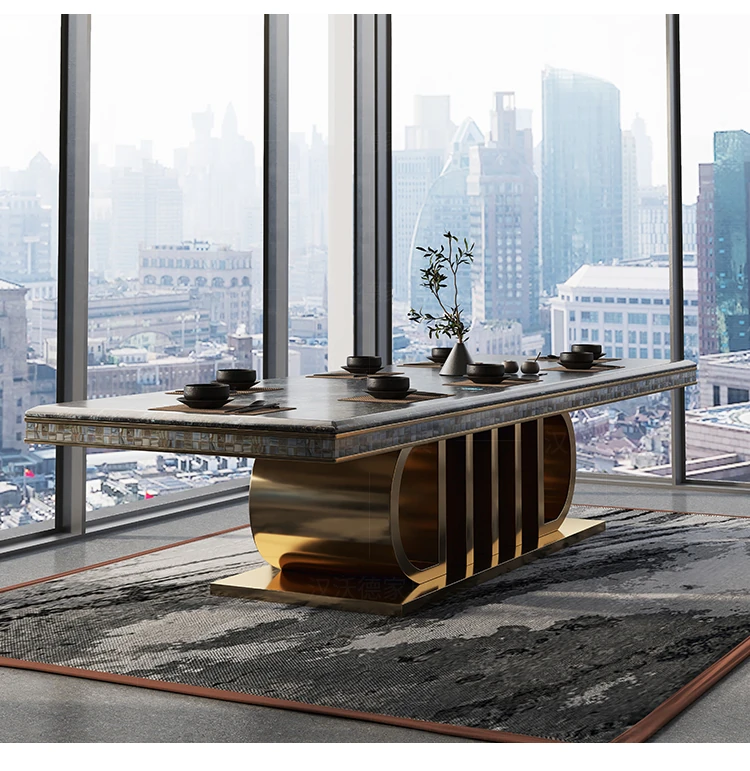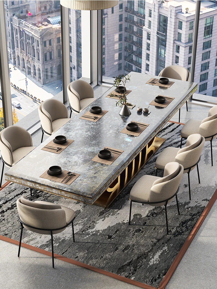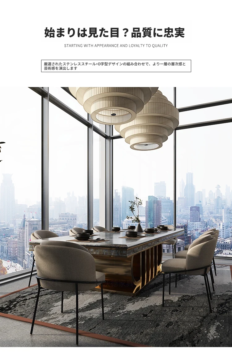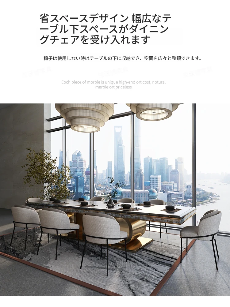 ラグジュアリーな大理石長方形ダイニングテーブル - 別荘やホテルに最適な高級感溢れるデザイン。家庭用やレストラン、クラブにぴったりなテーブル&チェアセット。洗練された食事空間を演出します!