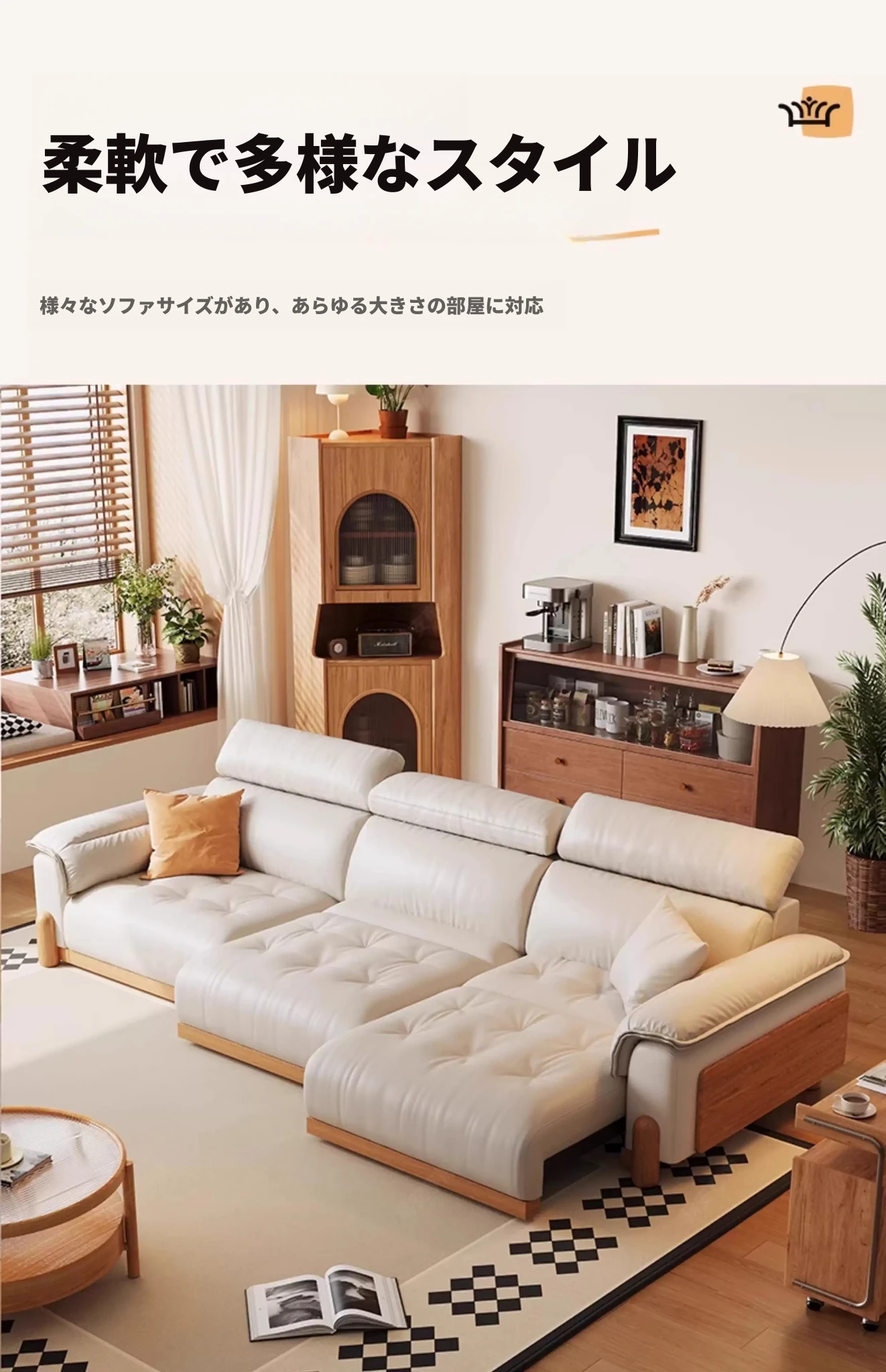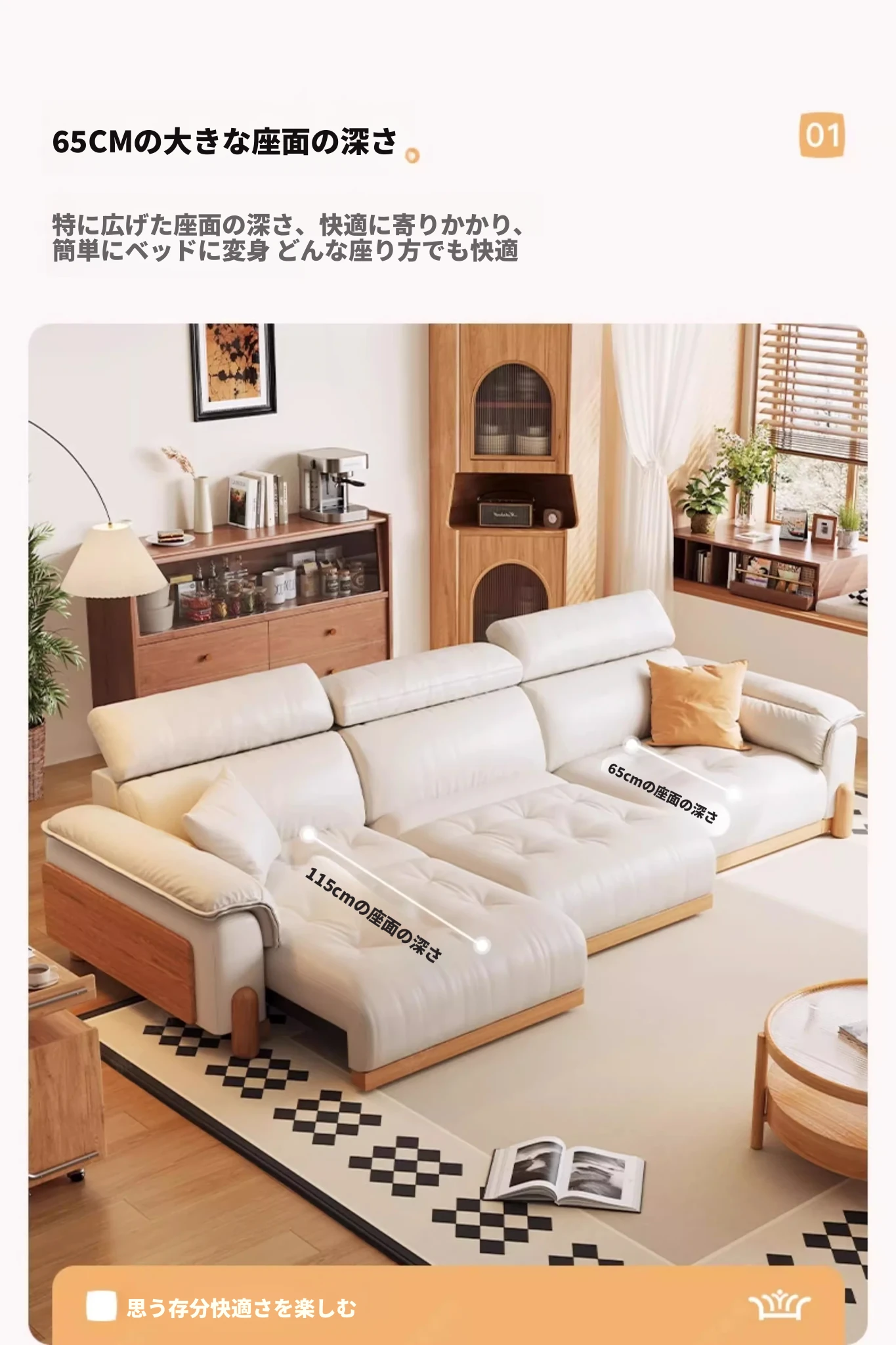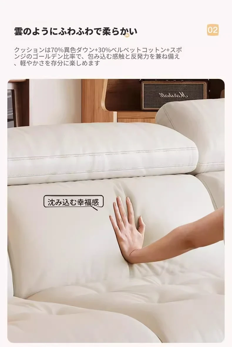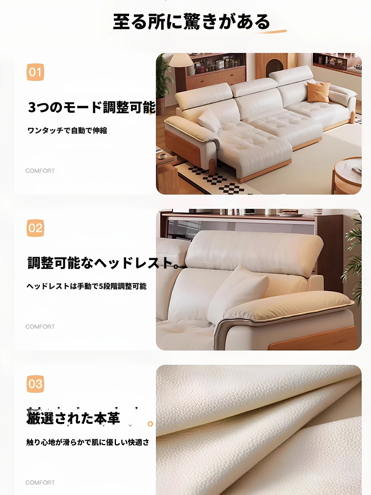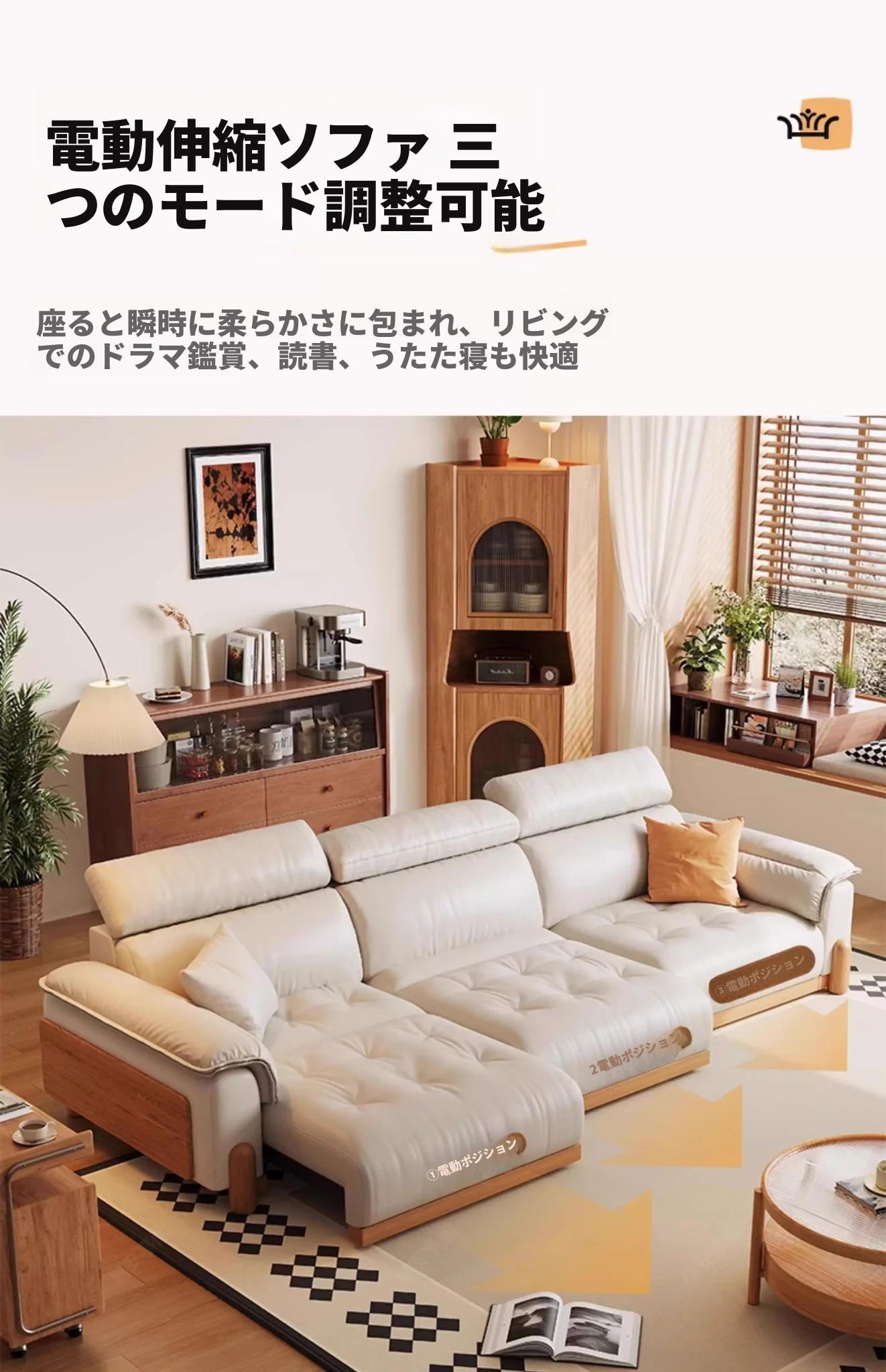 レトロな本革電動マルチファンクションソファベッド - 小さなリビングにぴったりな中古の無垢材伸縮型本皮ソファで、快適な空間を演出します!