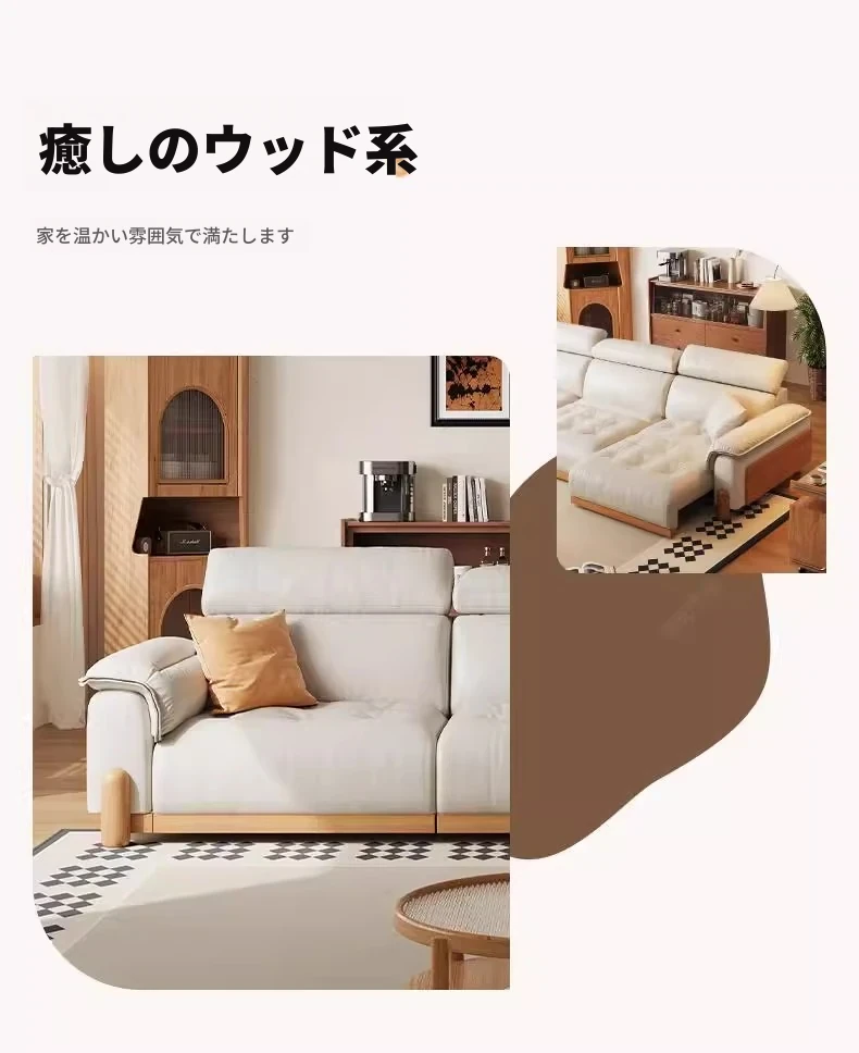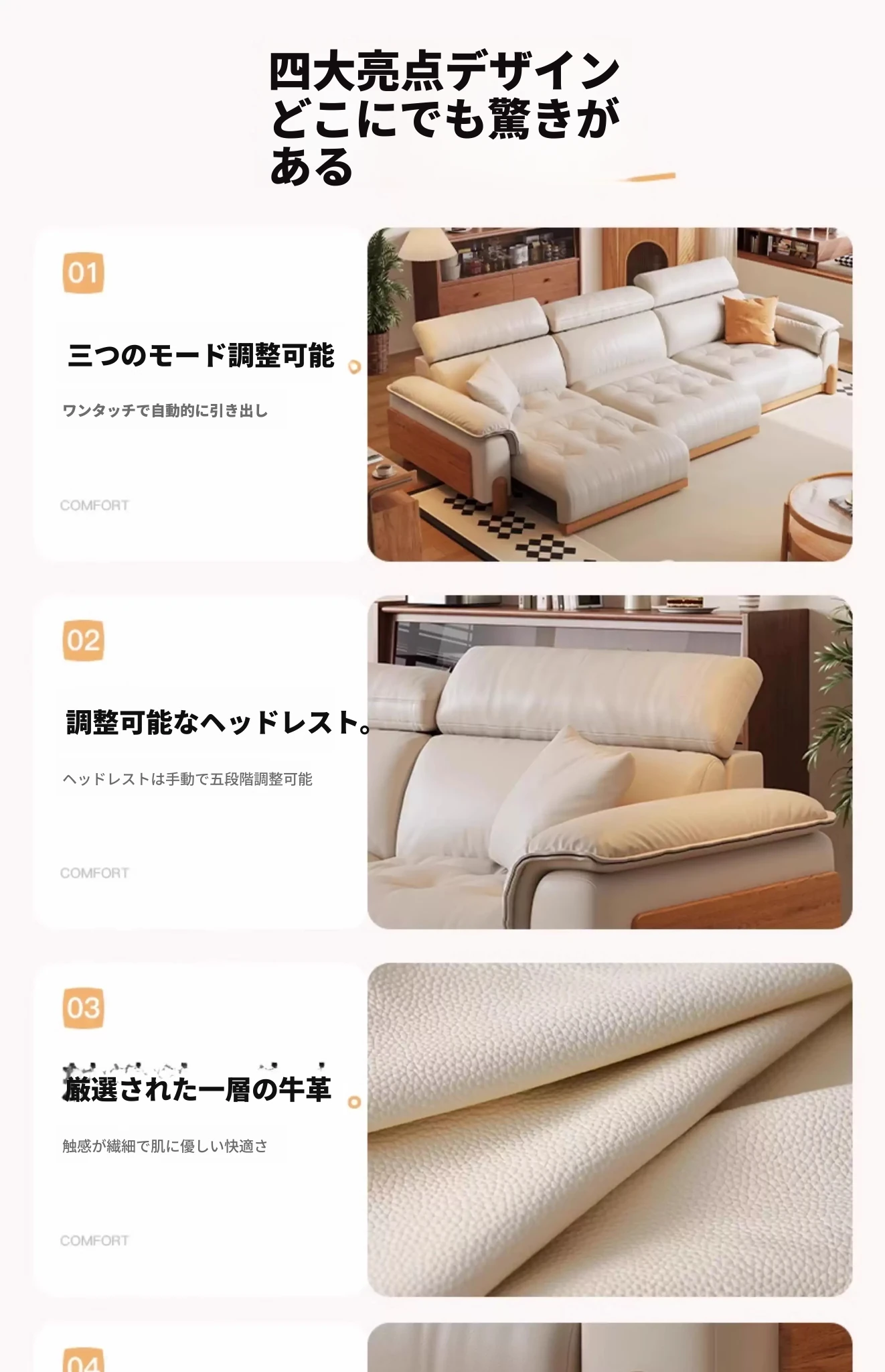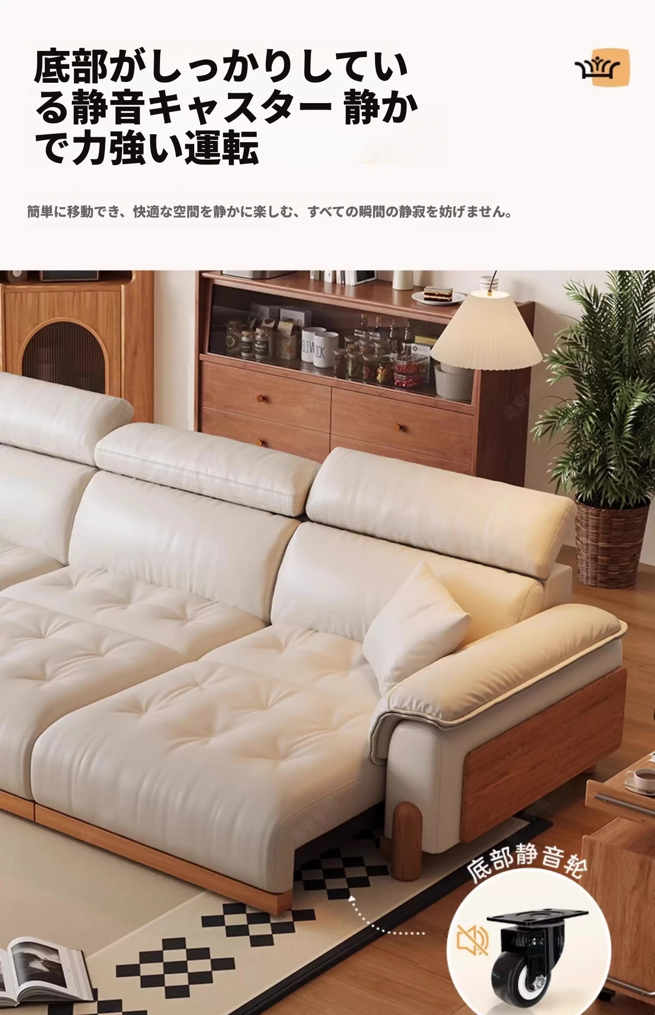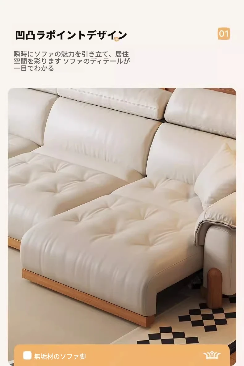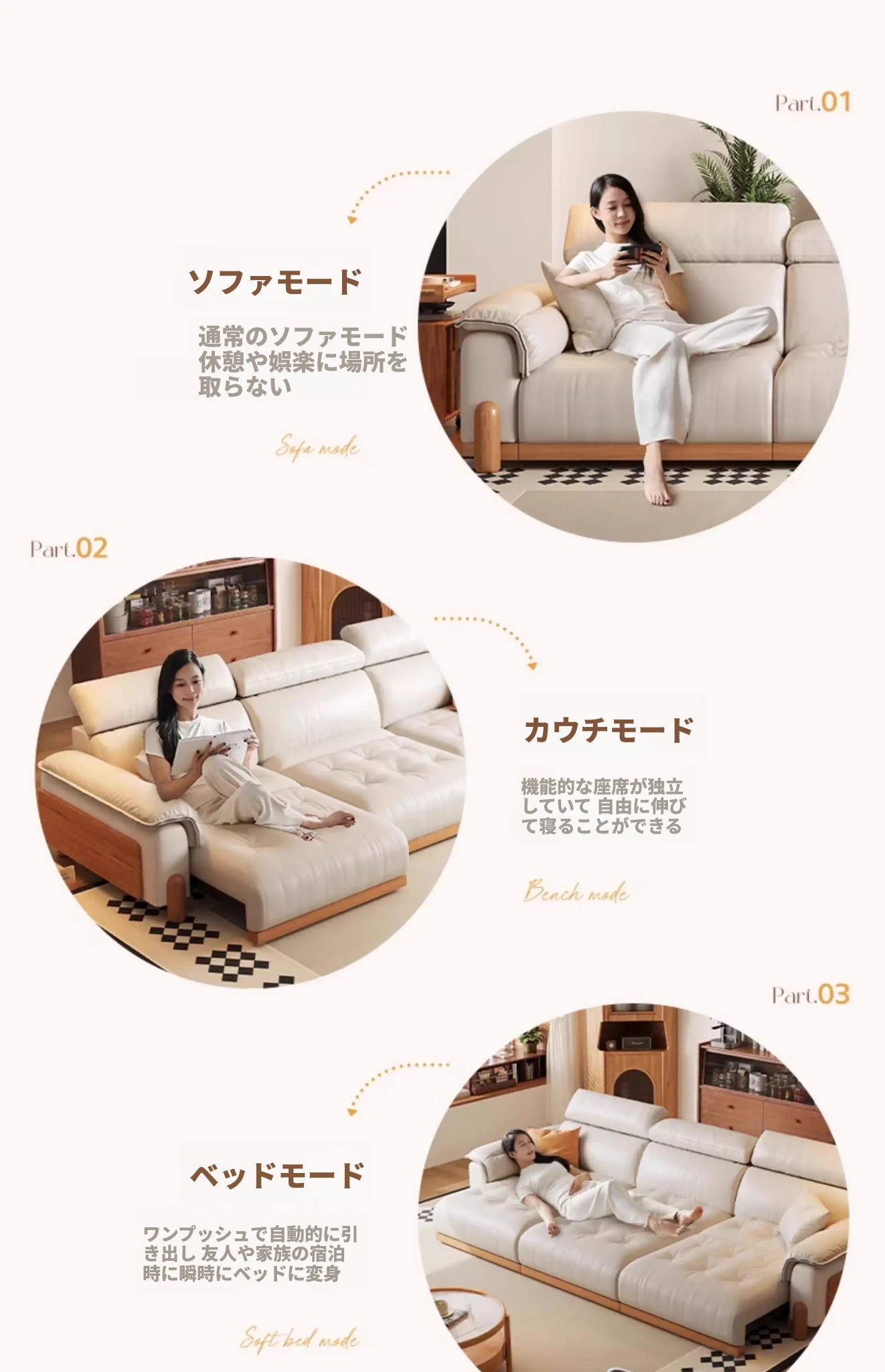 レトロな本革電動マルチファンクションソファベッド - 小さなリビングにぴったりな中古の無垢材伸縮型本皮ソファで、快適な空間を演出します!
