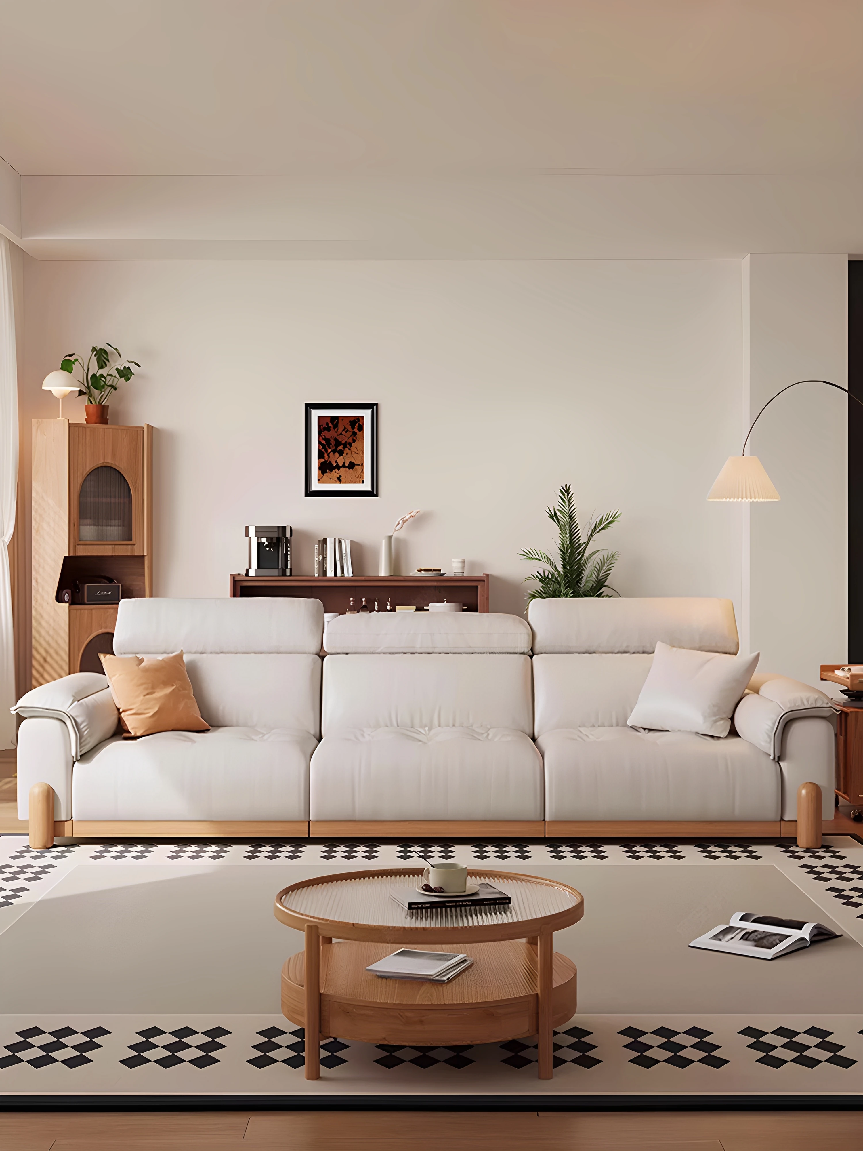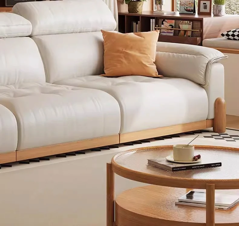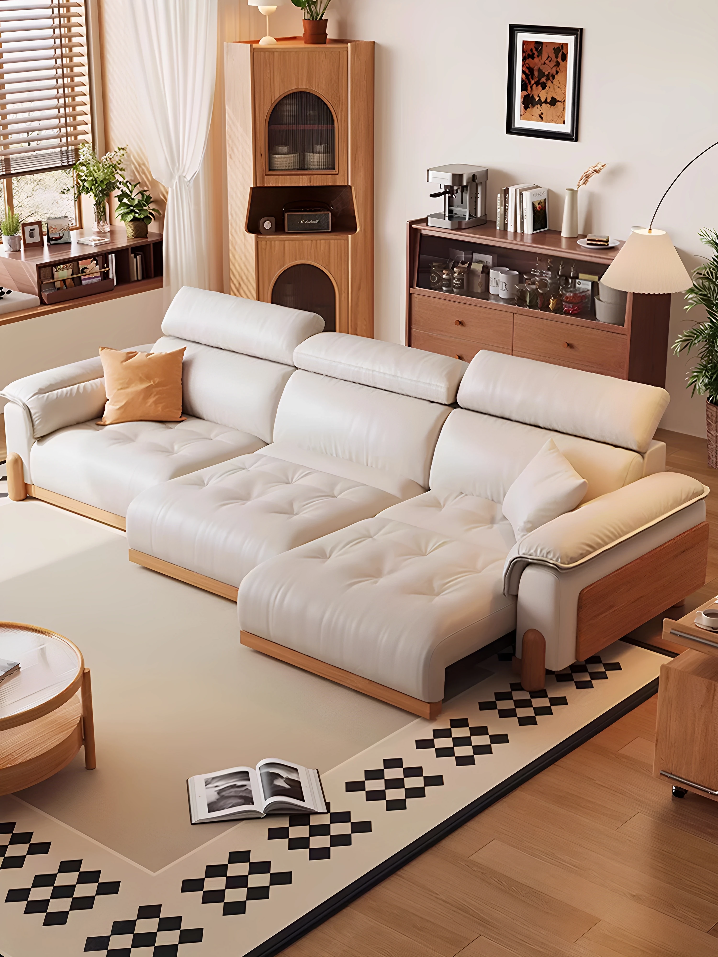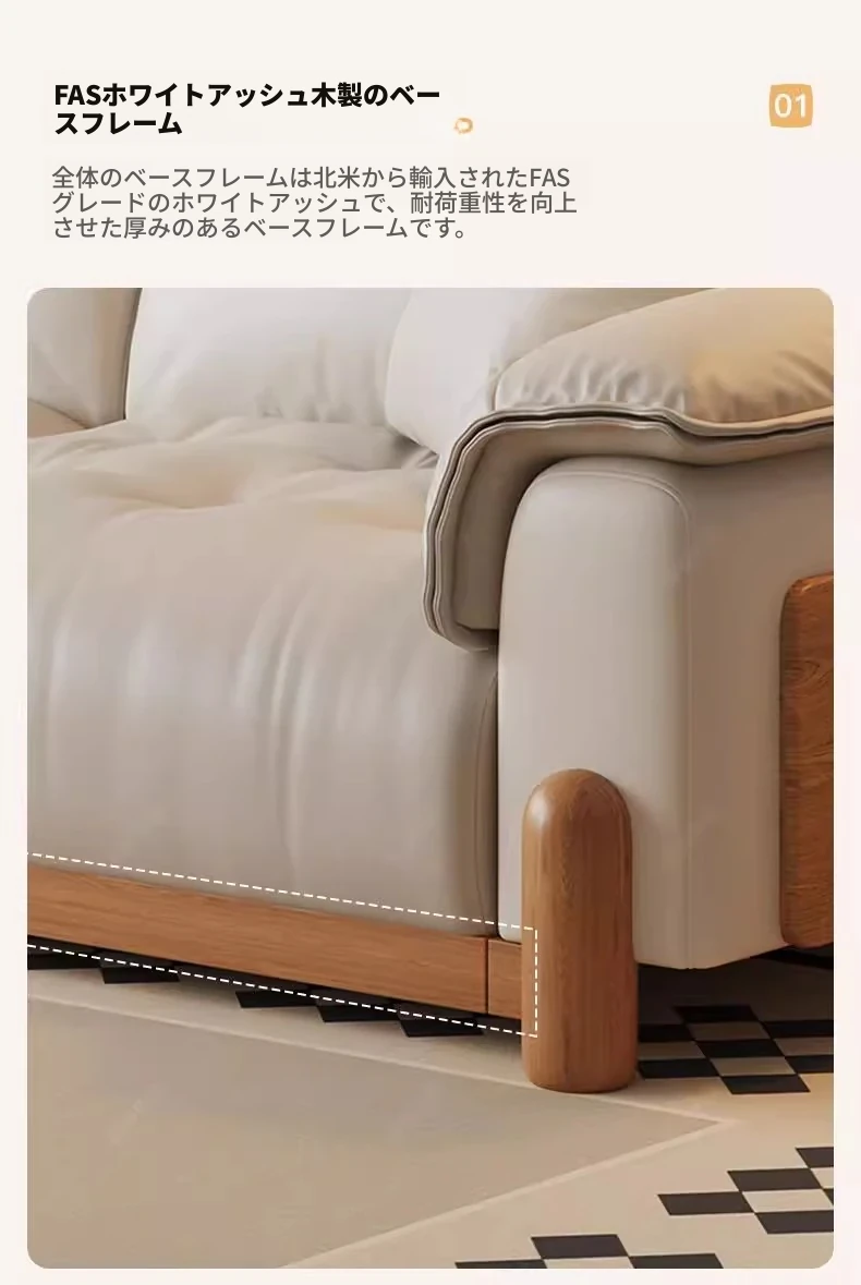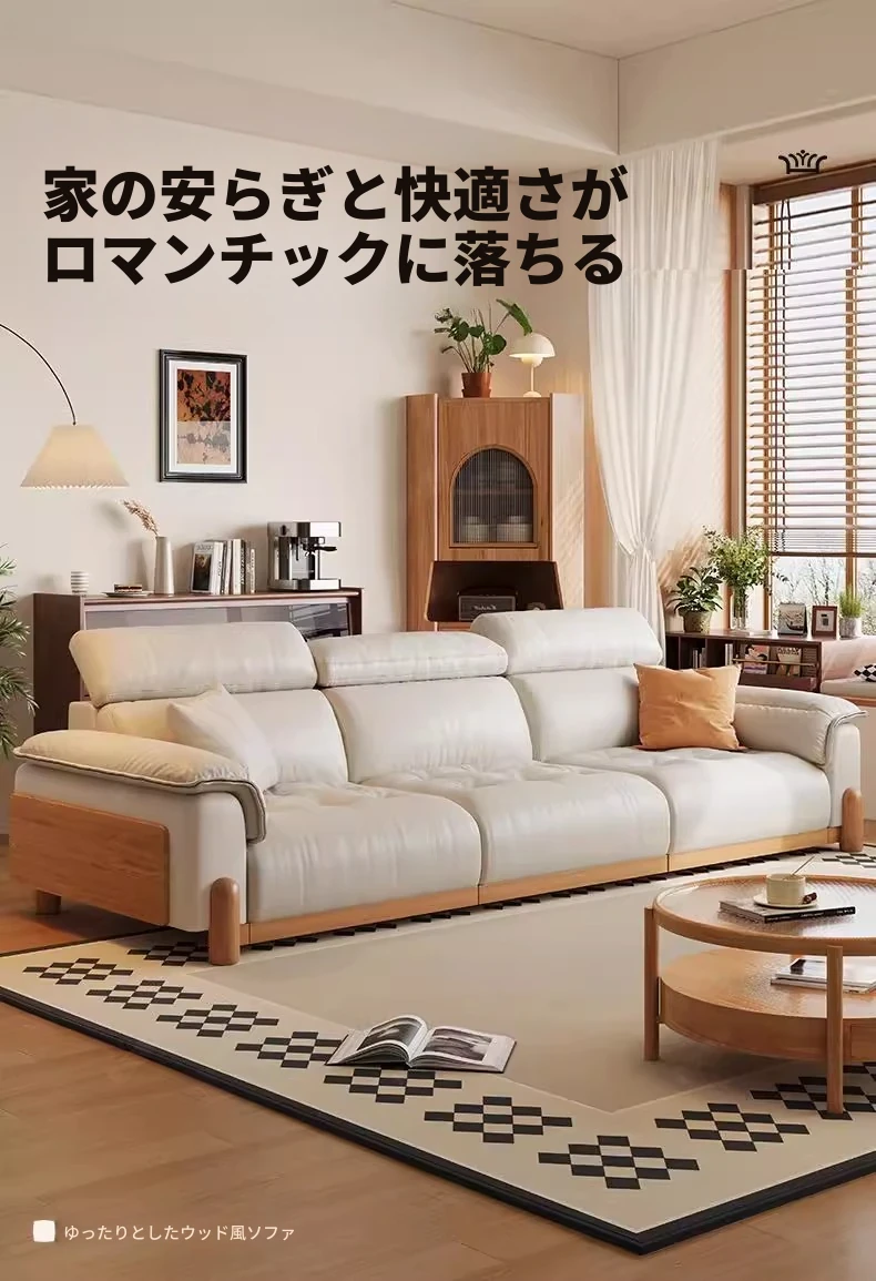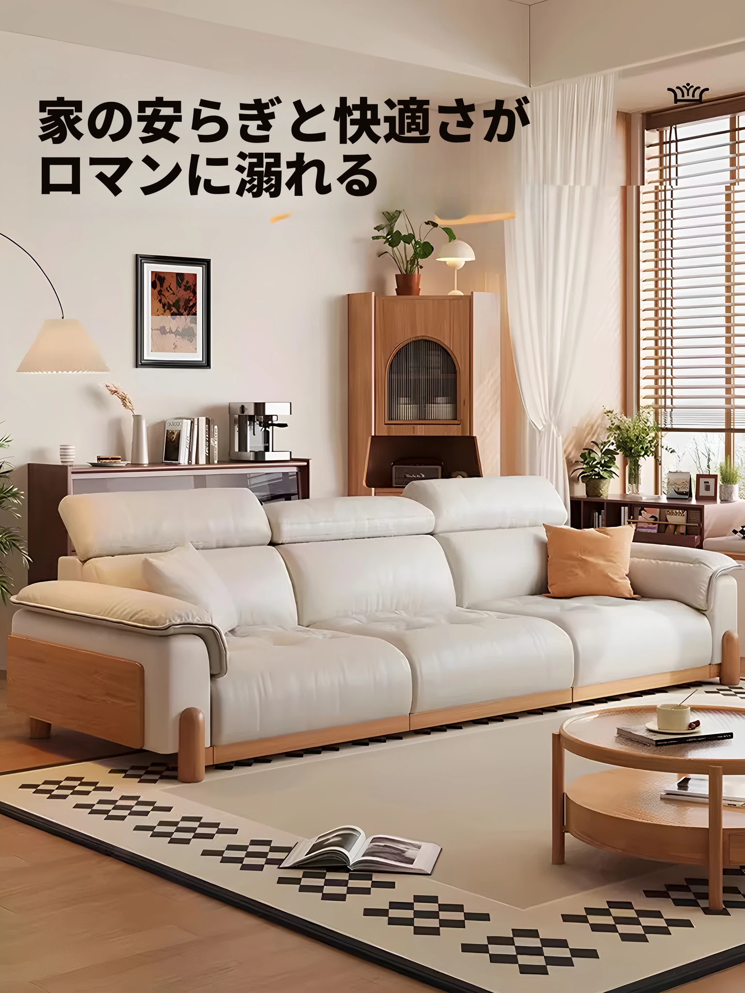 レトロな本革電動マルチファンクションソファベッド - 小さなリビングにぴったりな中古の無垢材伸縮型本皮ソファで、快適な空間を演出します!