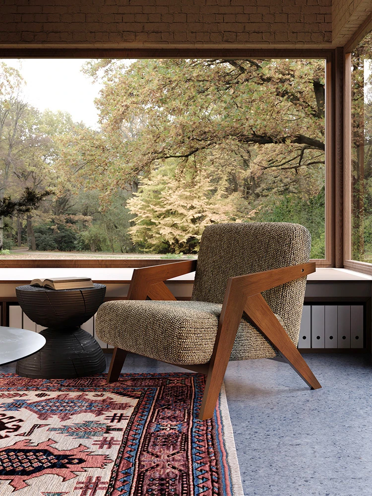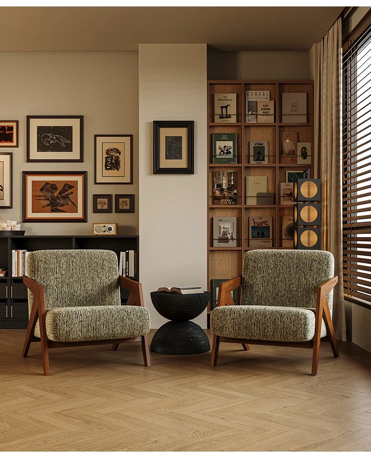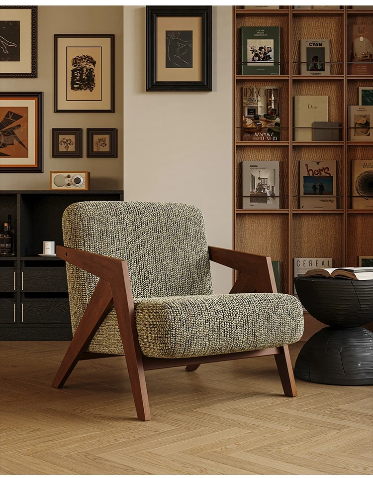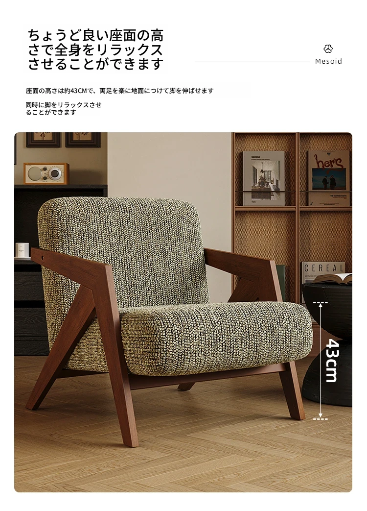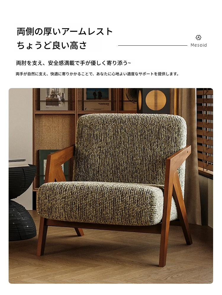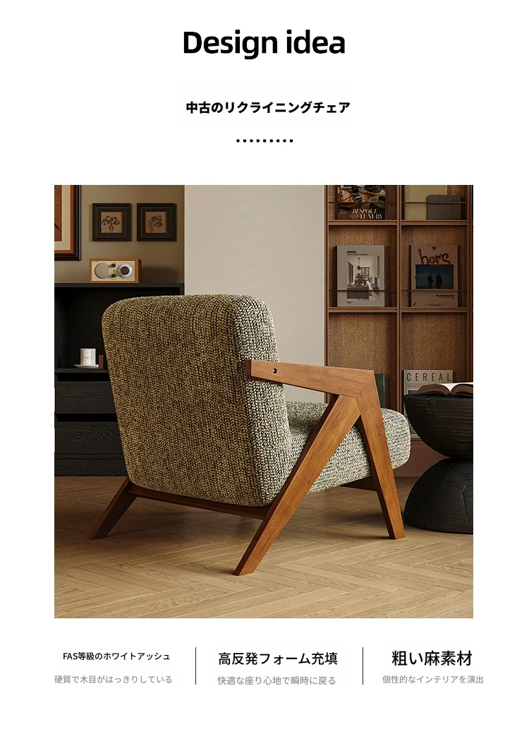 リチャードチェア 古風デザインの一人掛けソファ - おしゃれなレトロスタイル、ホテルや民宿にぴったり!高品質の無垢材使用で、リラックスしたひとときを提供します。インスタ映え間違いなし!