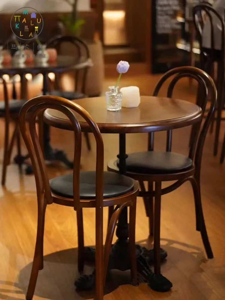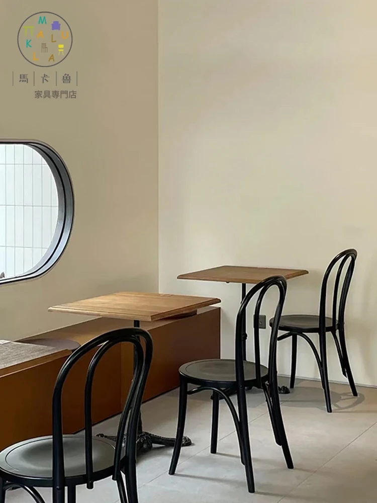 マカル北欧デザインのラタン編み実木ダイニングチェア - おしゃれなカフェや民宿にぴったり!インスタ映えするレストラン用テーブル椅子セット。快適さとスタイルを兼ね備えた一品!