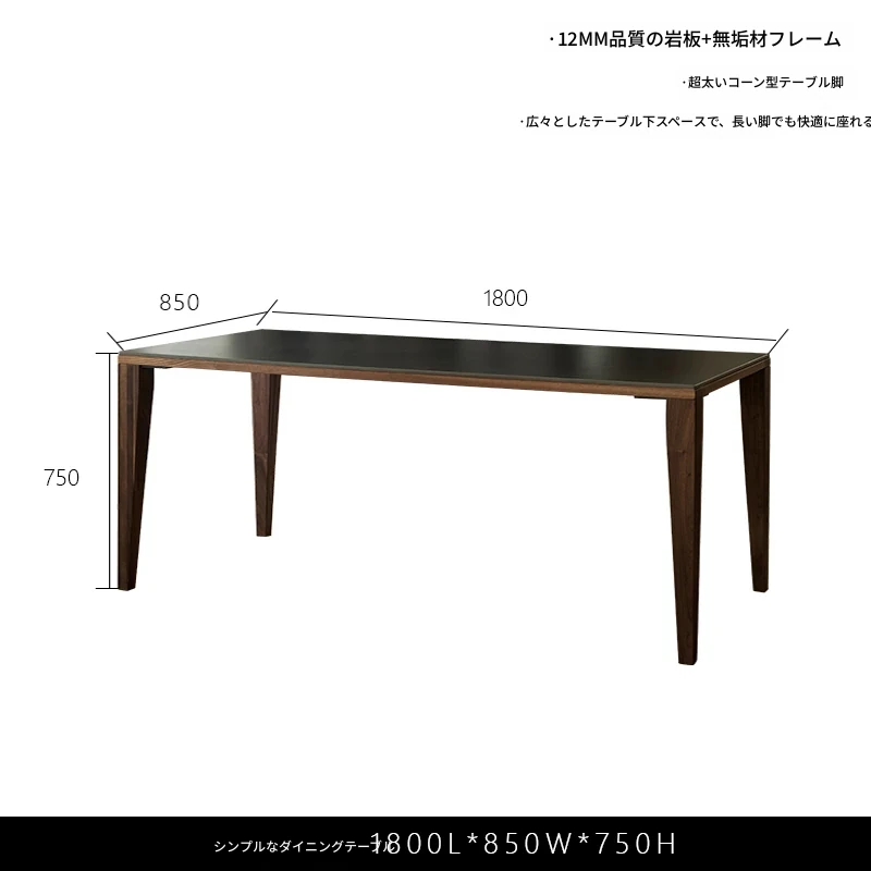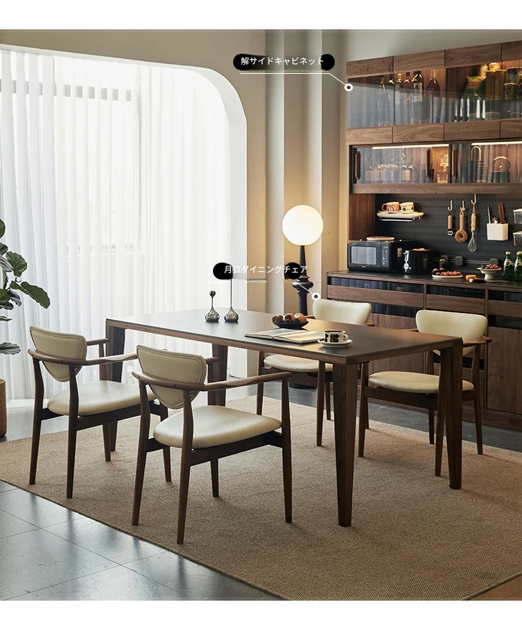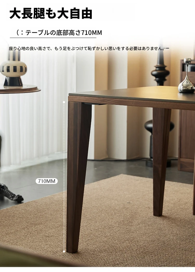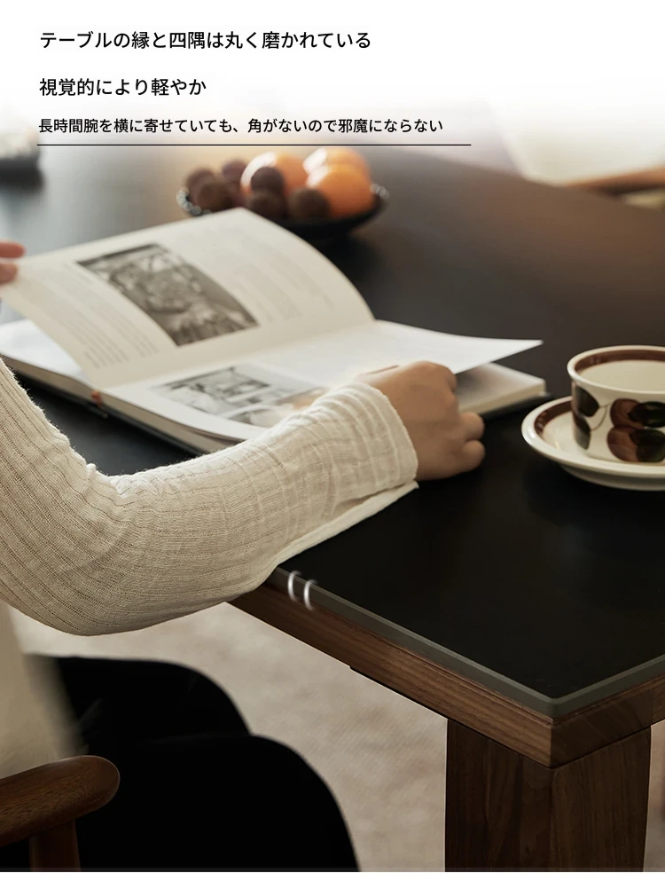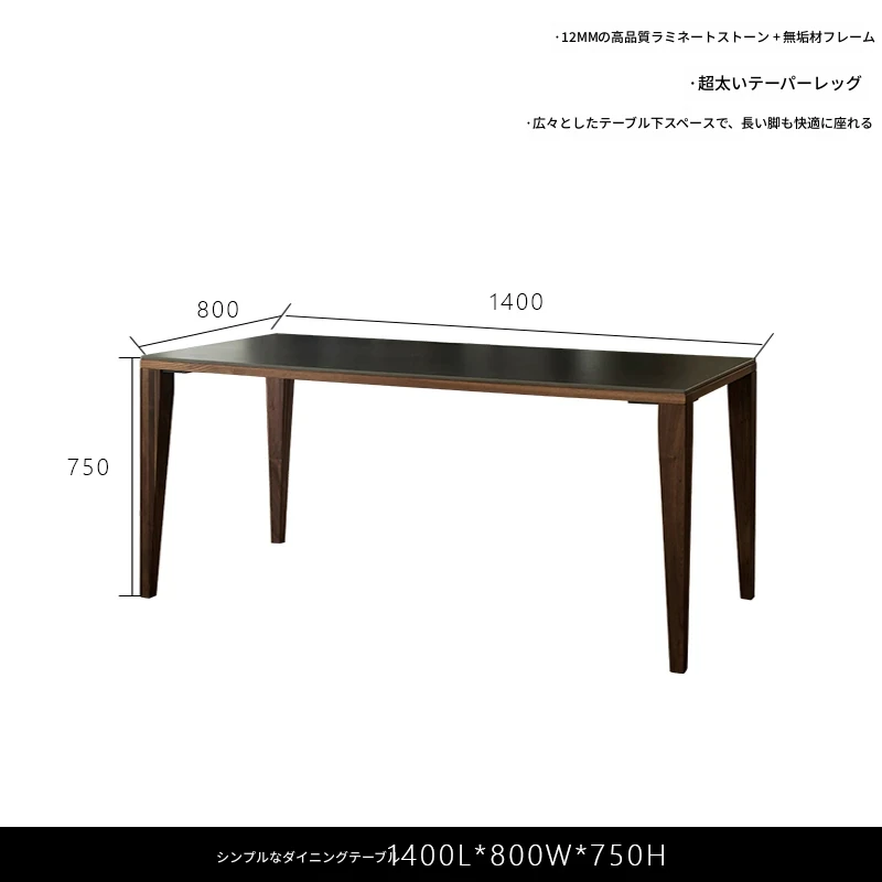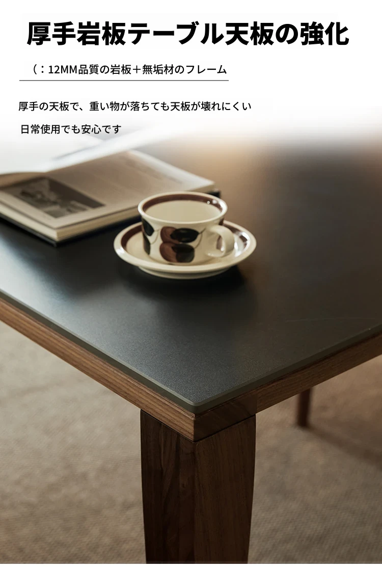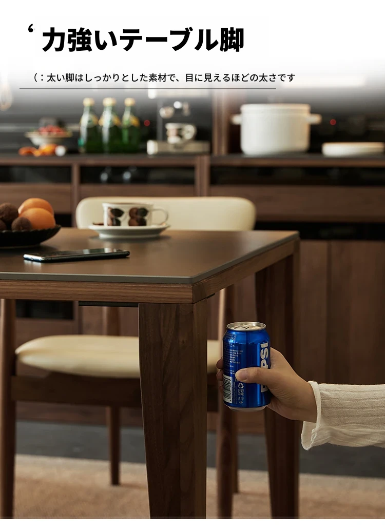 北米産ブラックウォールナットの無垢材を使用した北欧風モダンデザインの長方形ダイニングテーブル。小さなお部屋にもぴったり!シンプルで洗練されたスタイルで、食卓を華やかに彩ります。