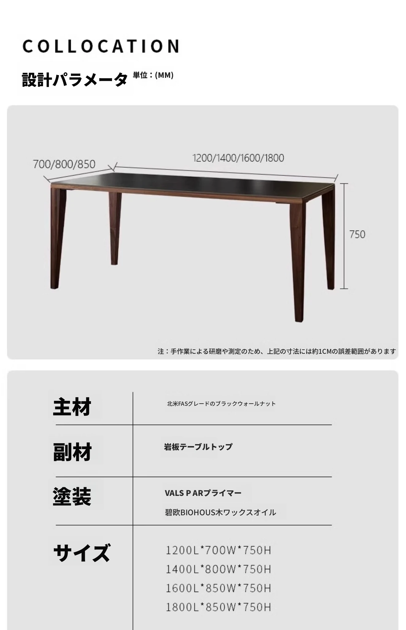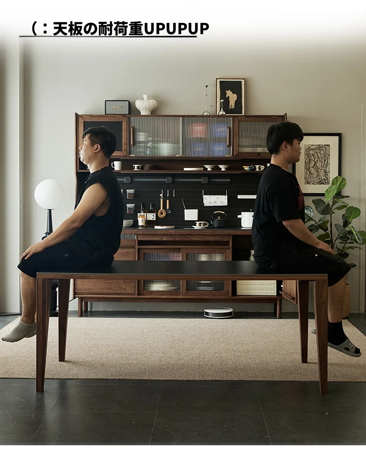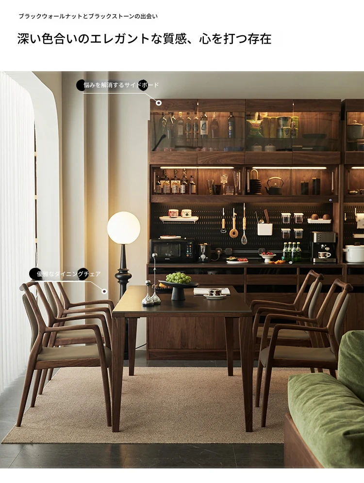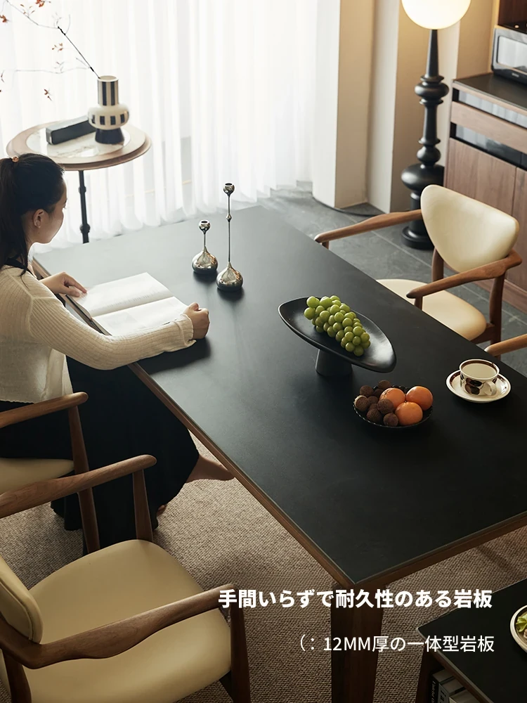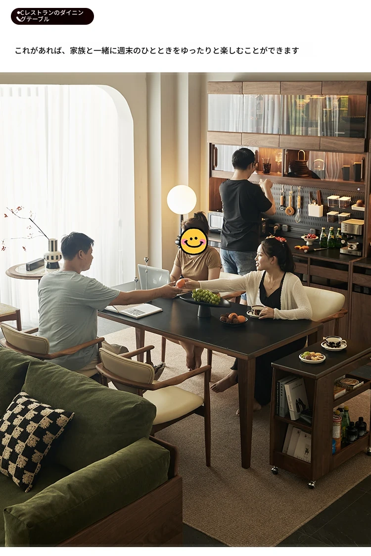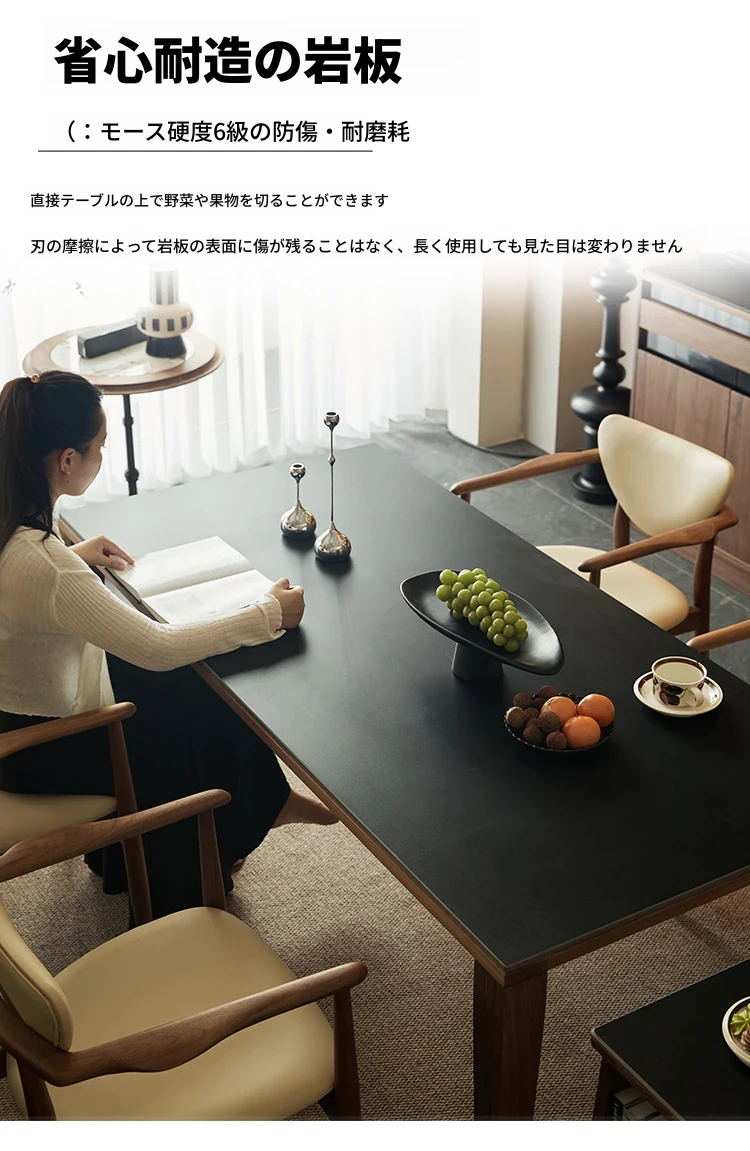 北米産ブラックウォールナットの無垢材を使用した北欧風モダンデザインの長方形ダイニングテーブル。小さなお部屋にもぴったり!シンプルで洗練されたスタイルで、食卓を華やかに彩ります。