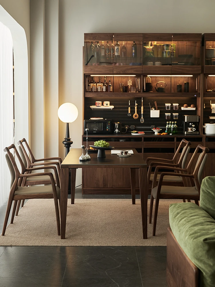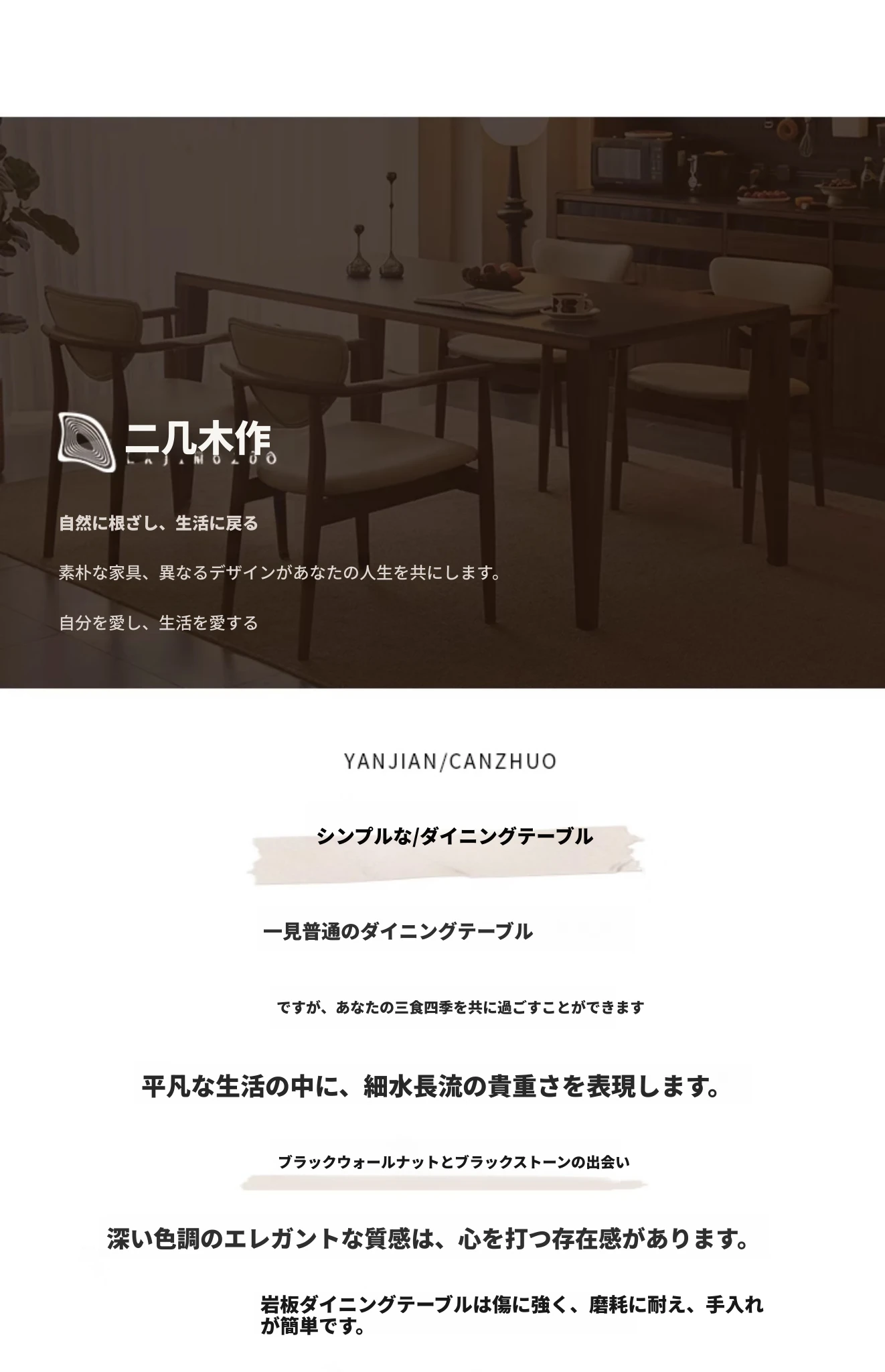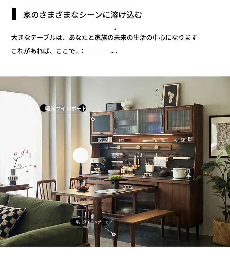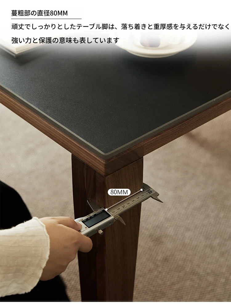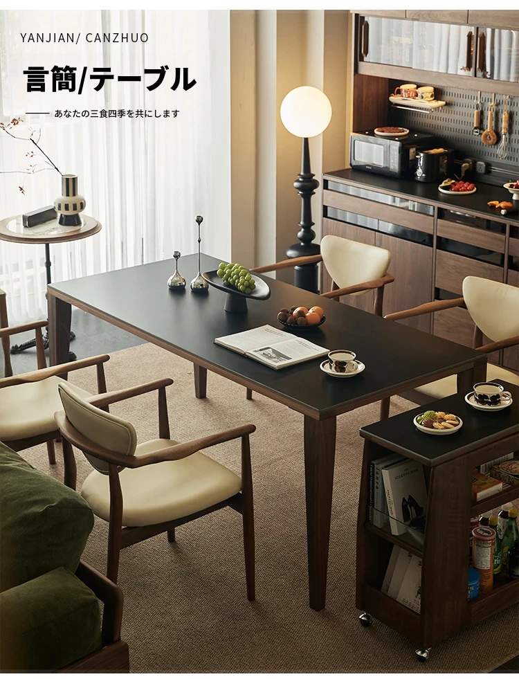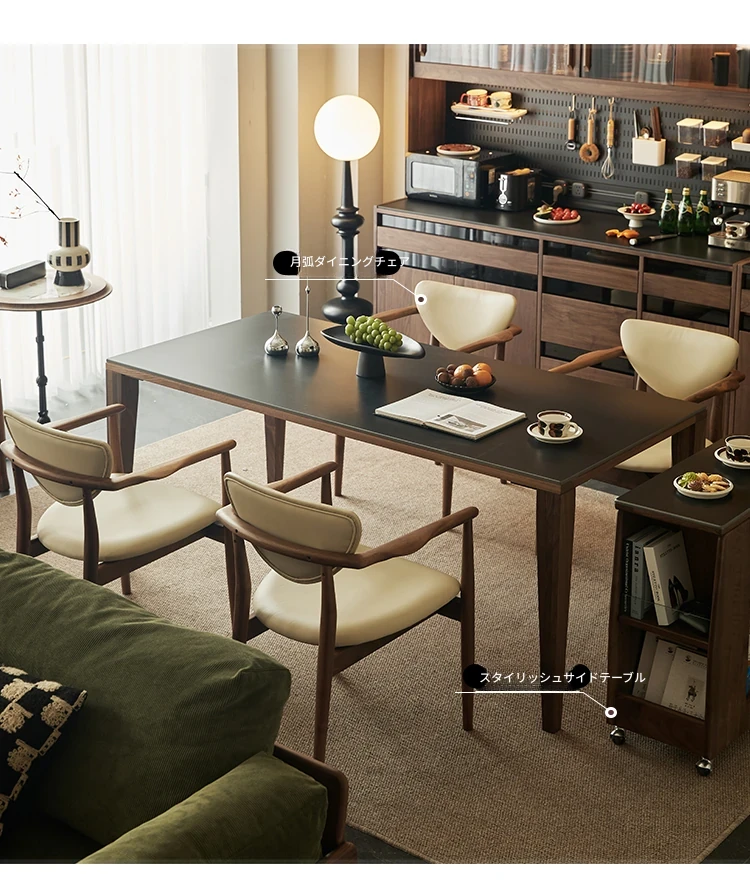 北米産ブラックウォールナットの無垢材を使用した北欧風モダンデザインの長方形ダイニングテーブル。小さなお部屋にもぴったり!シンプルで洗練されたスタイルで、食卓を華やかに彩ります。