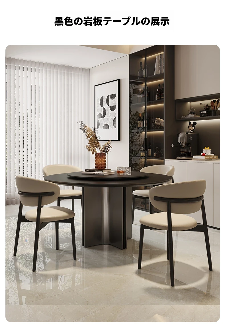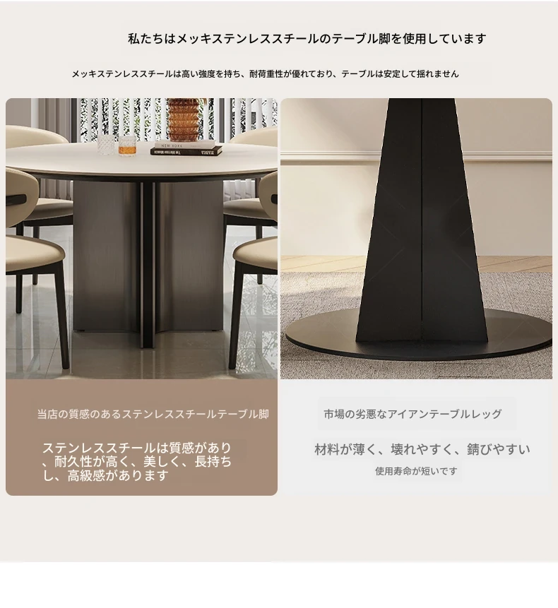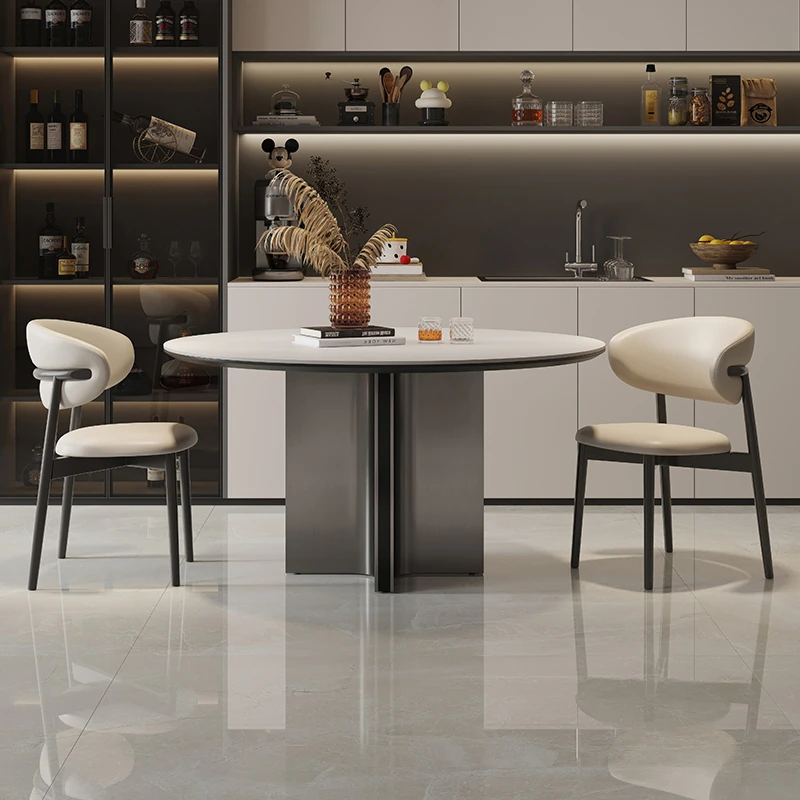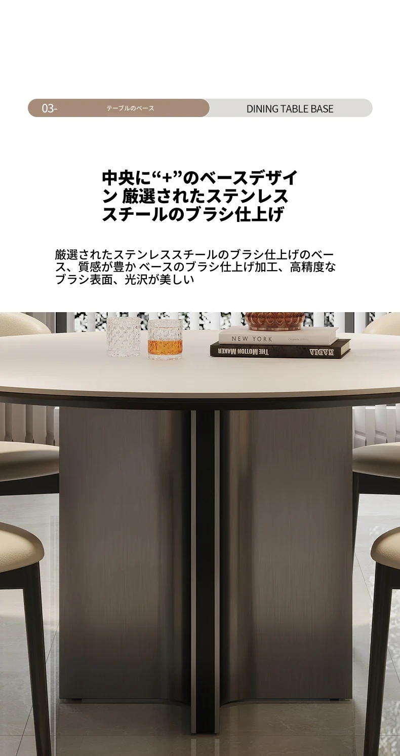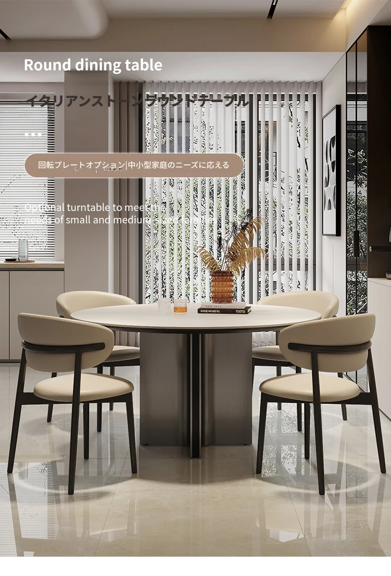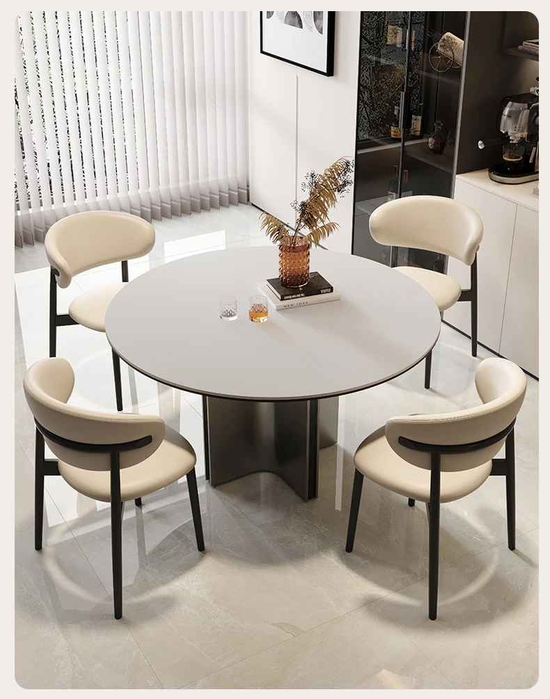 クロスステンレス製ラウンドテーブル - イタリアンミニマリズムの軽やかな贅沢、モダンでシンプルなデザインの家庭用食卓。高品質の岩板仕上げで、どんなインテリアにもマッチ!
