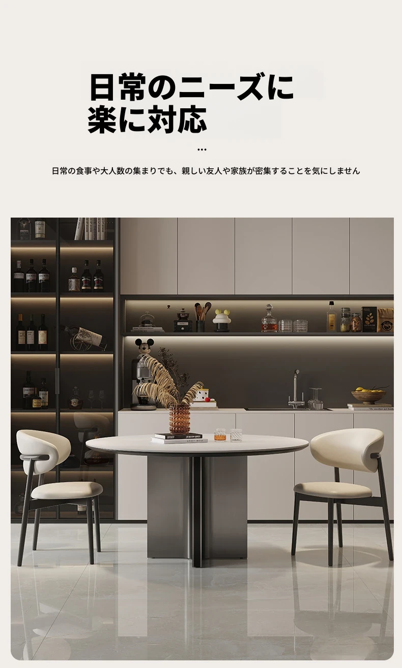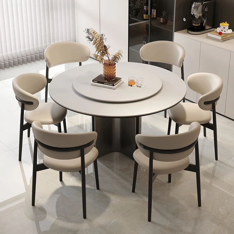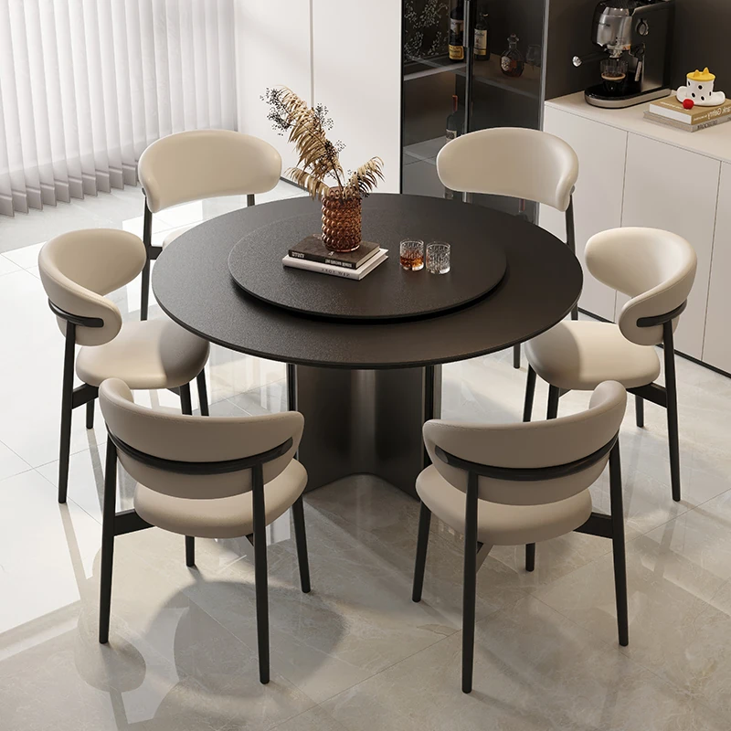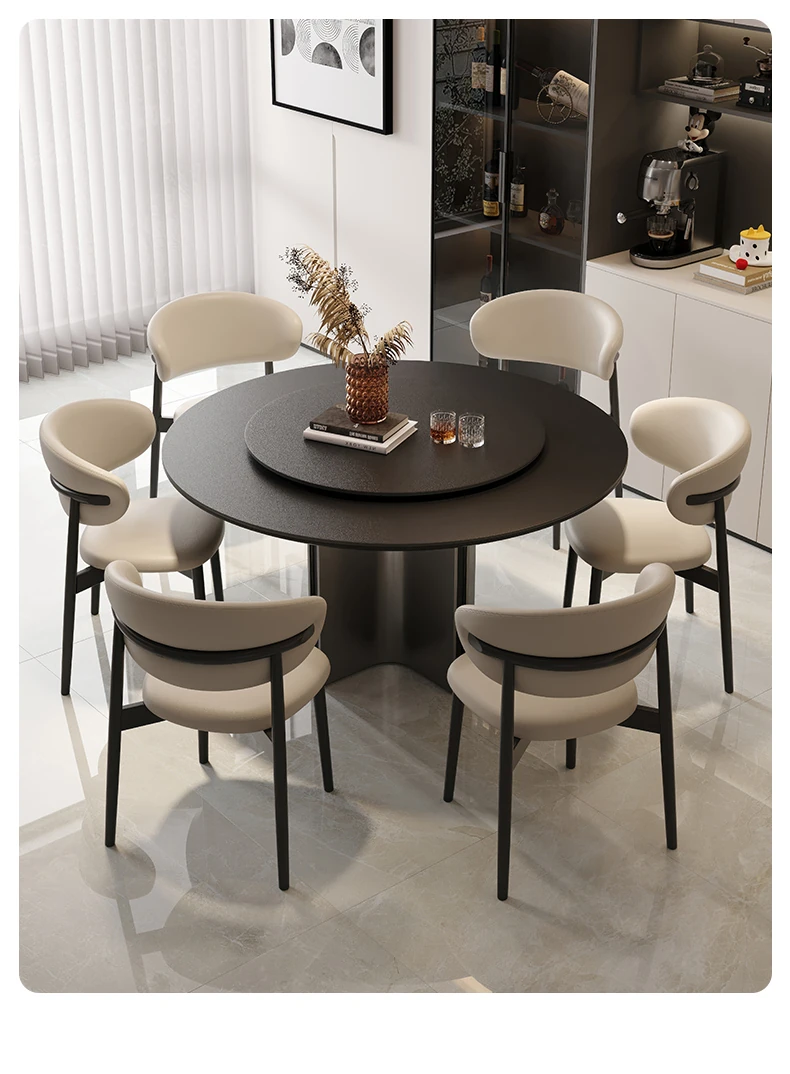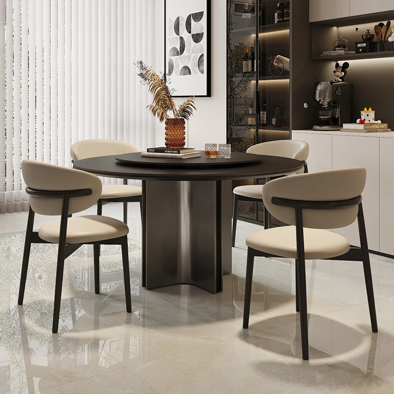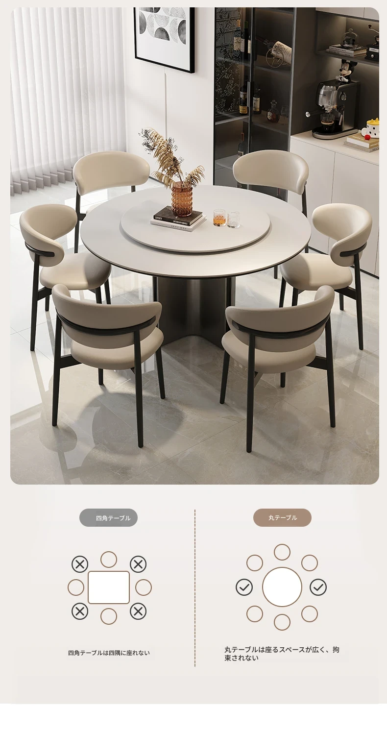 クロスステンレス製ラウンドテーブル - イタリアンミニマリズムの軽やかな贅沢、モダンでシンプルなデザインの家庭用食卓。高品質の岩板仕上げで、どんなインテリアにもマッチ!