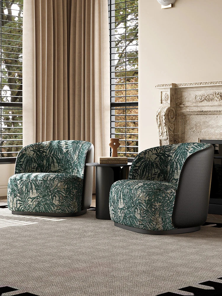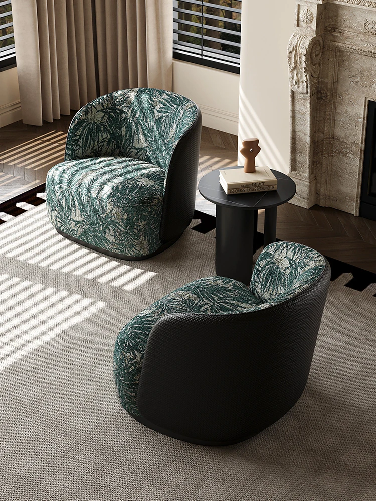 水墨樹影ソファチェア(編み皮+ジャカード生地)