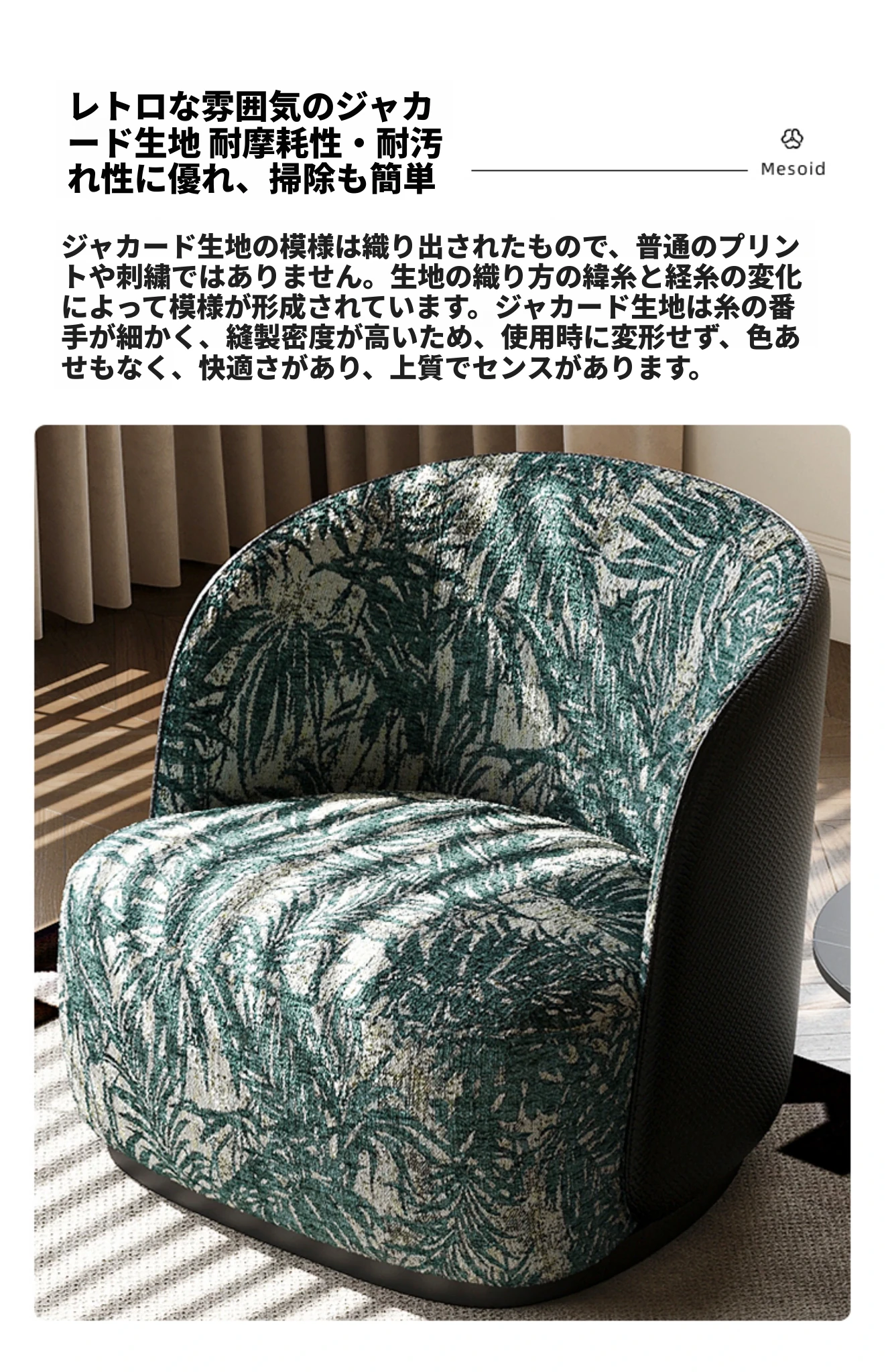 霧青樹影ソファチェア(編み皮+ジャカード生地)