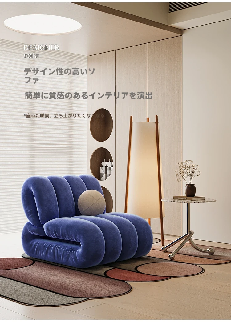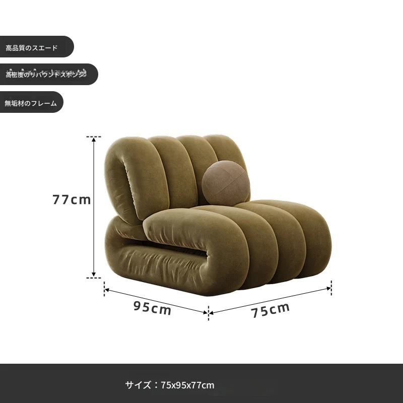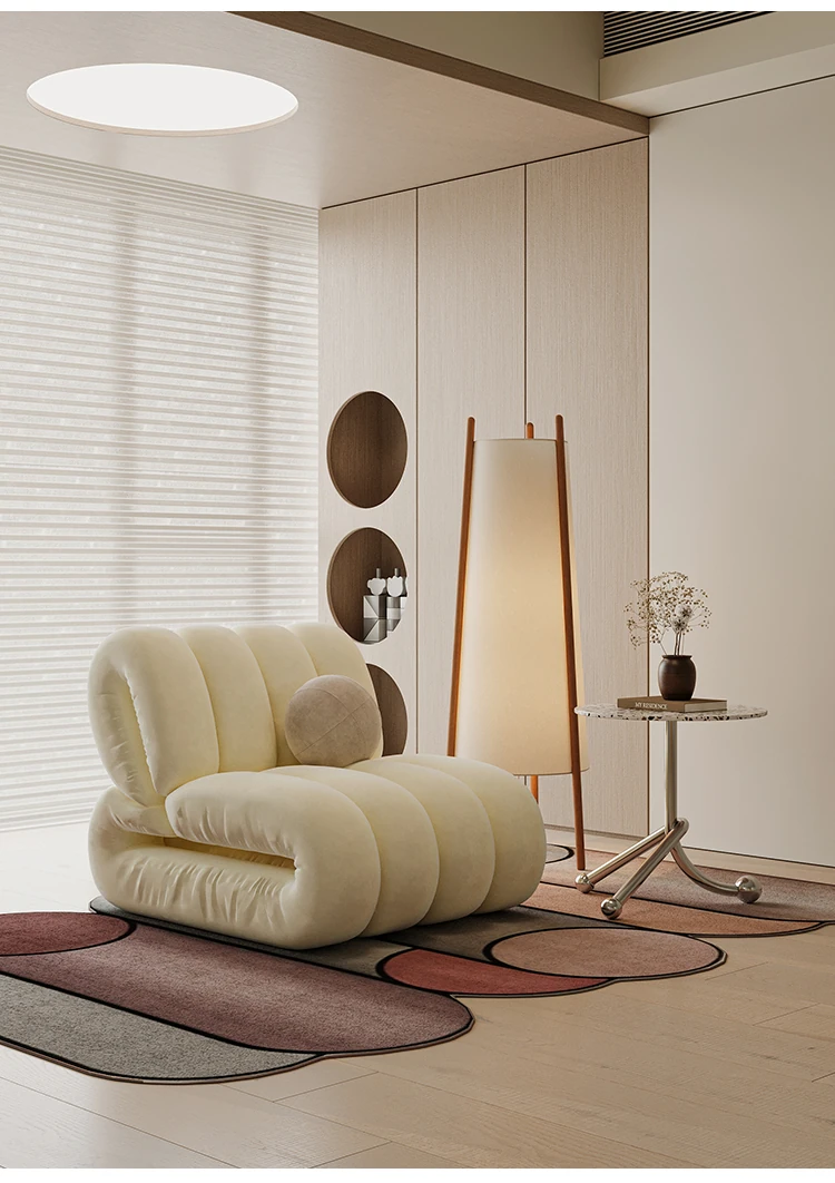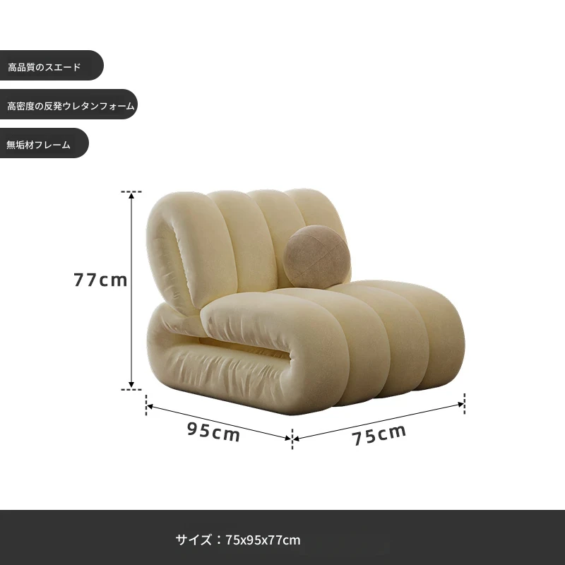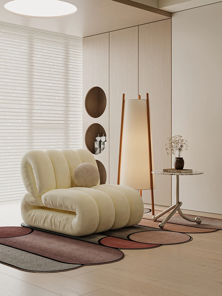 トレンドのクリーム風一人掛けソファ - モダンでシンプル、ラグジュアリーなデザイン!リビングやバルコニーにぴったりなクリエイティブなリラックスチェア!あなたの空間をおしゃれに演出します。