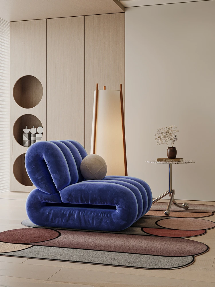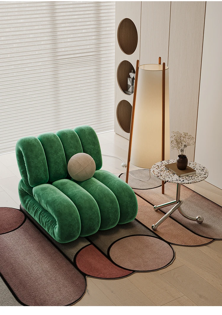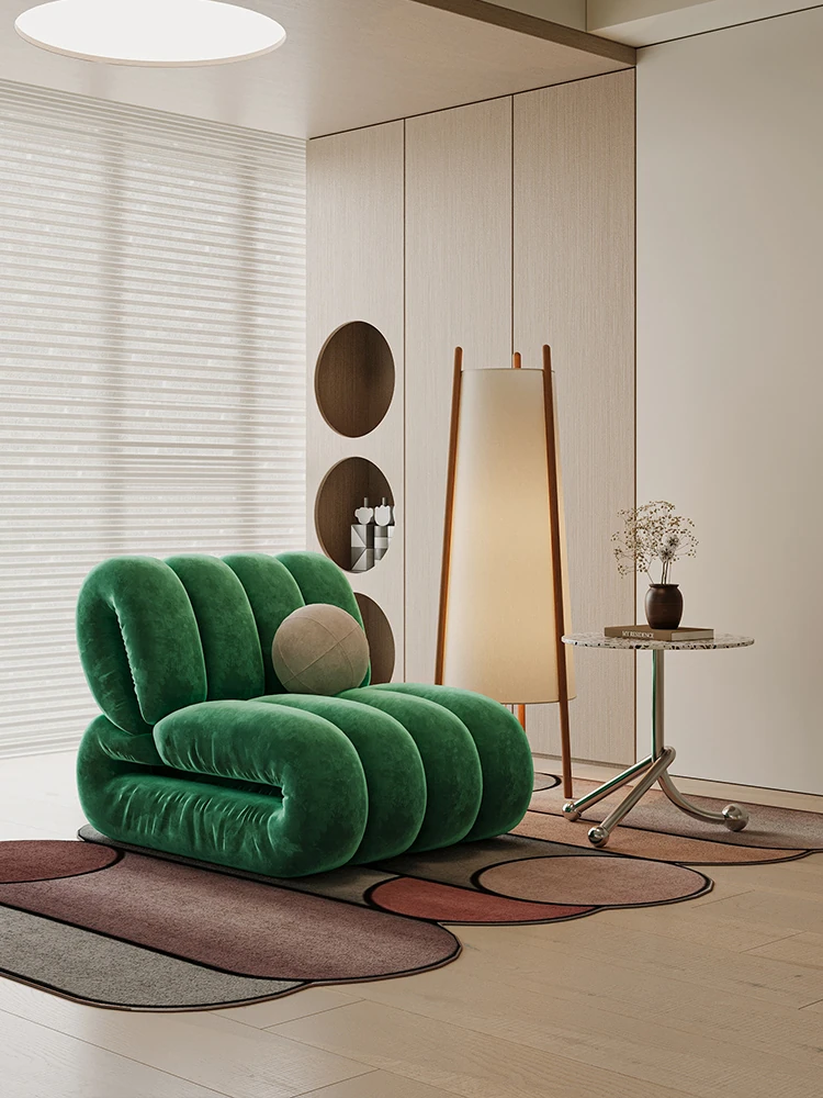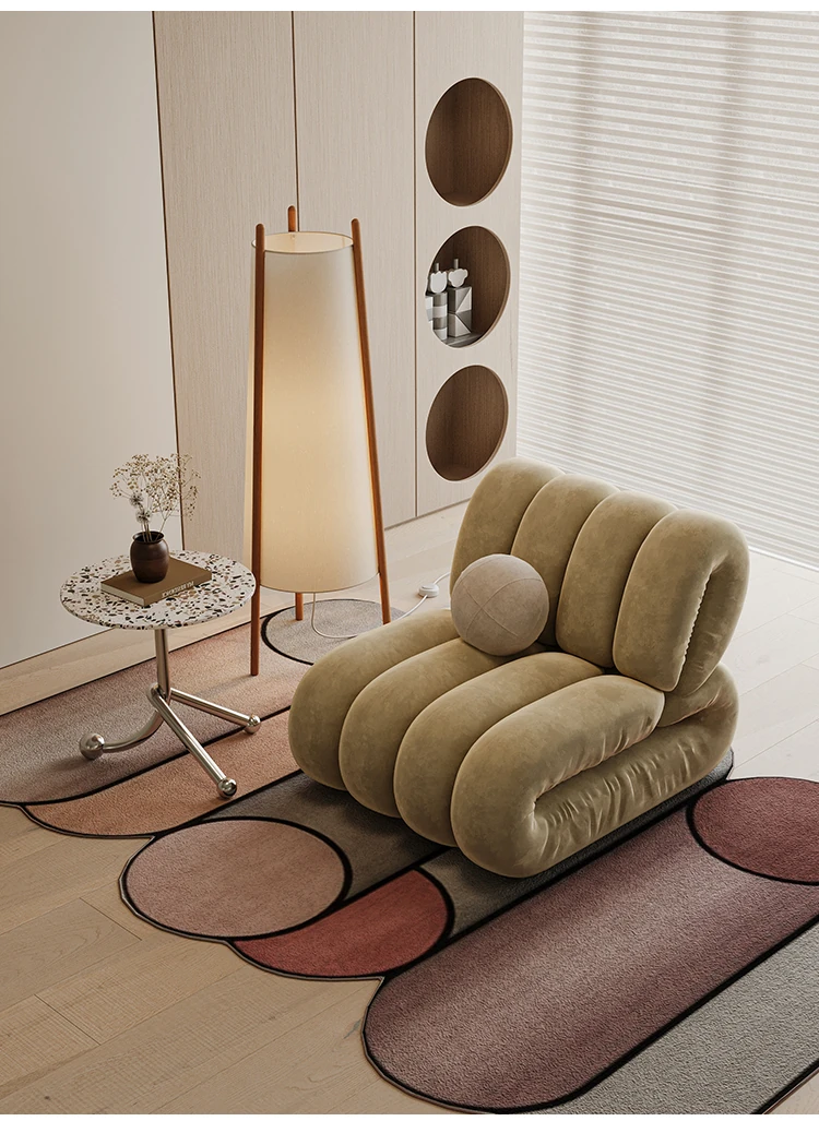 トレンドのクリーム風一人掛けソファ - モダンでシンプル、ラグジュアリーなデザイン!リビングやバルコニーにぴったりなクリエイティブなリラックスチェア!あなたの空間をおしゃれに演出します。