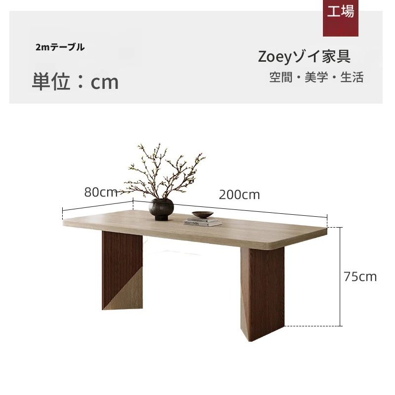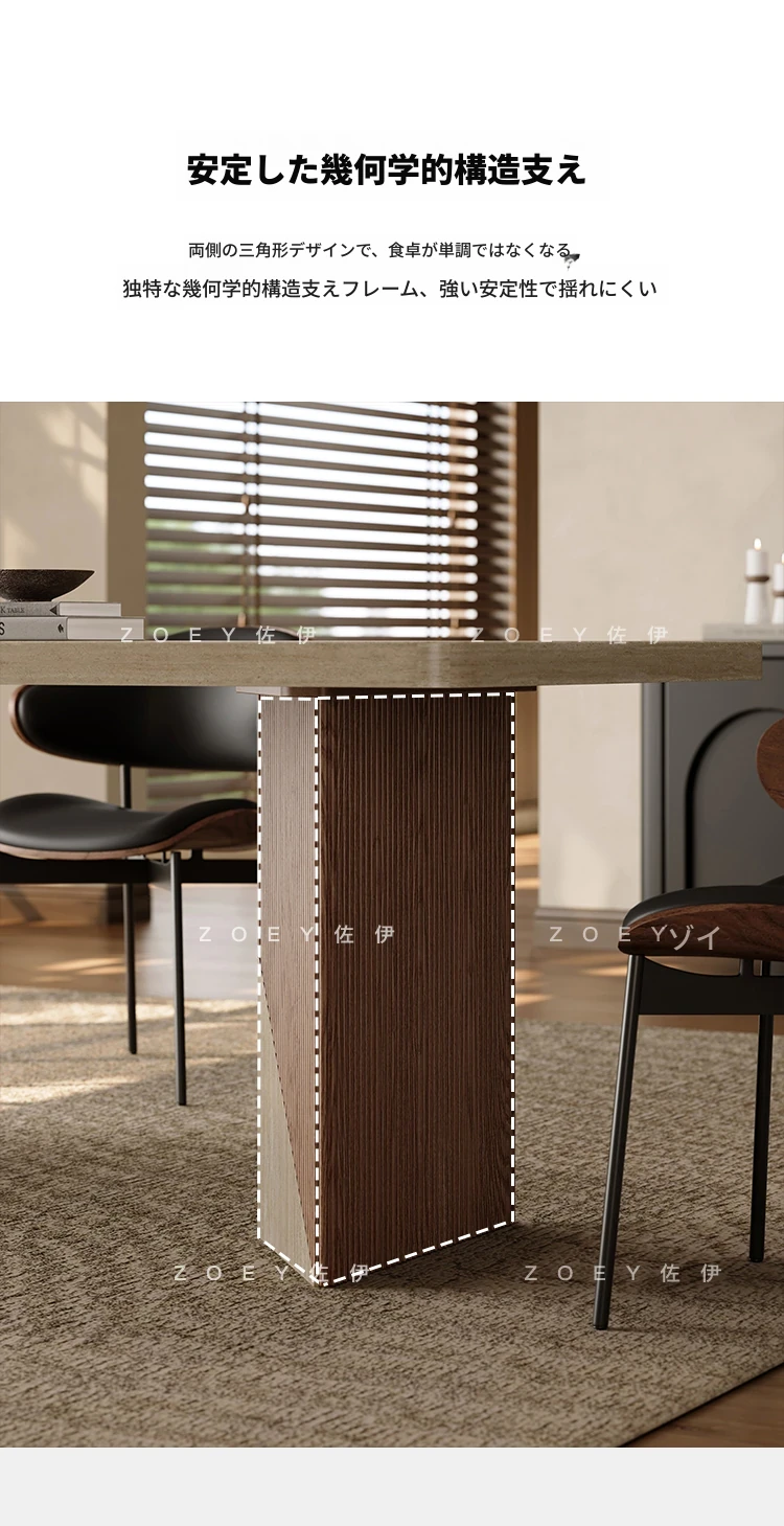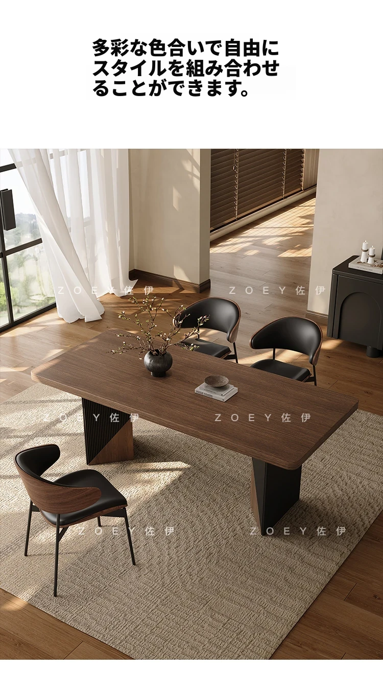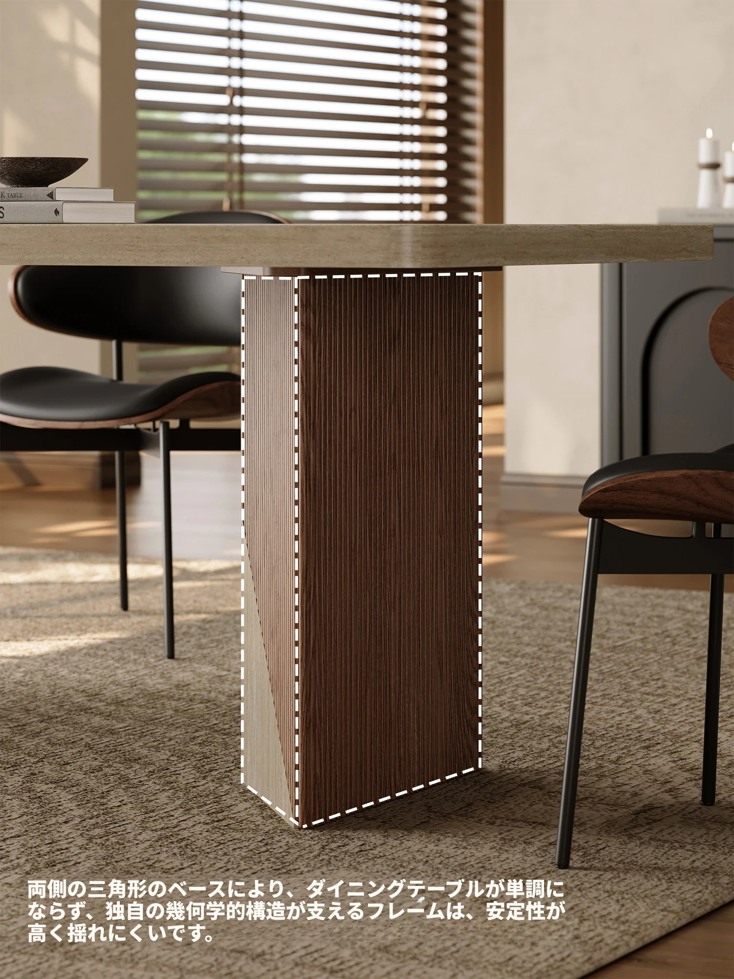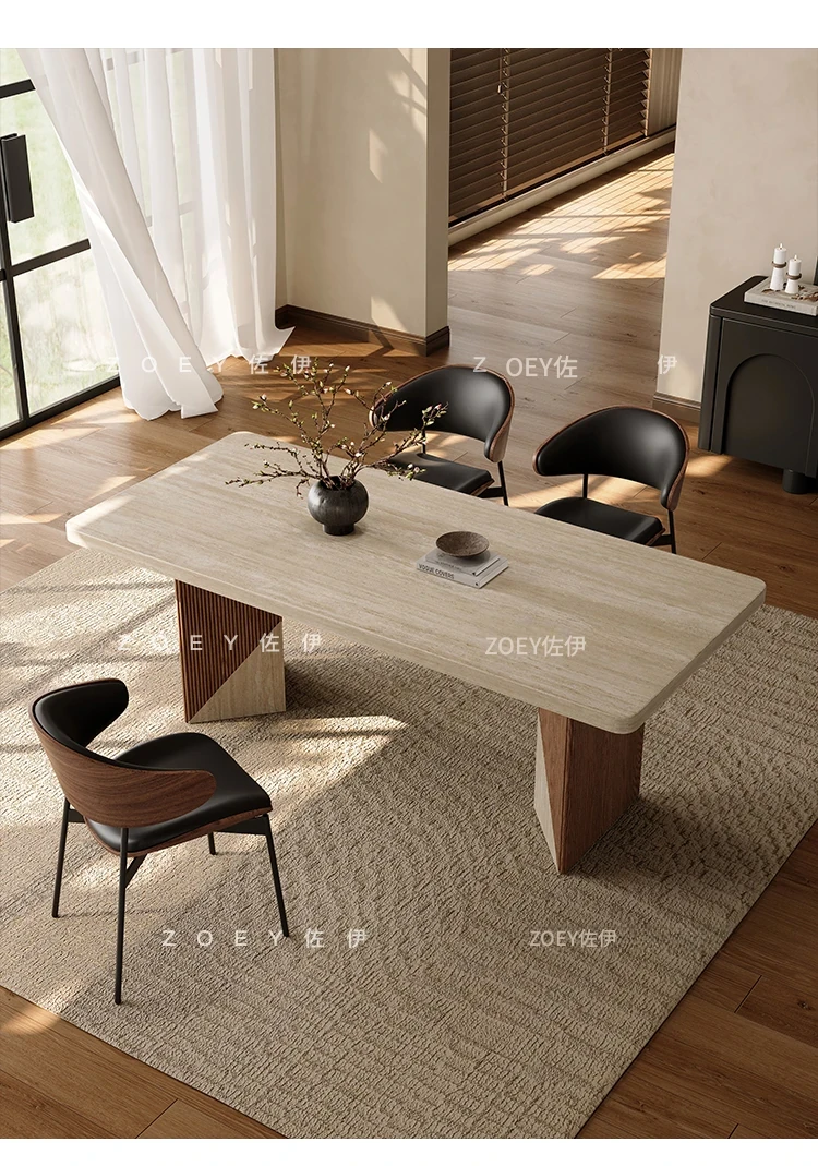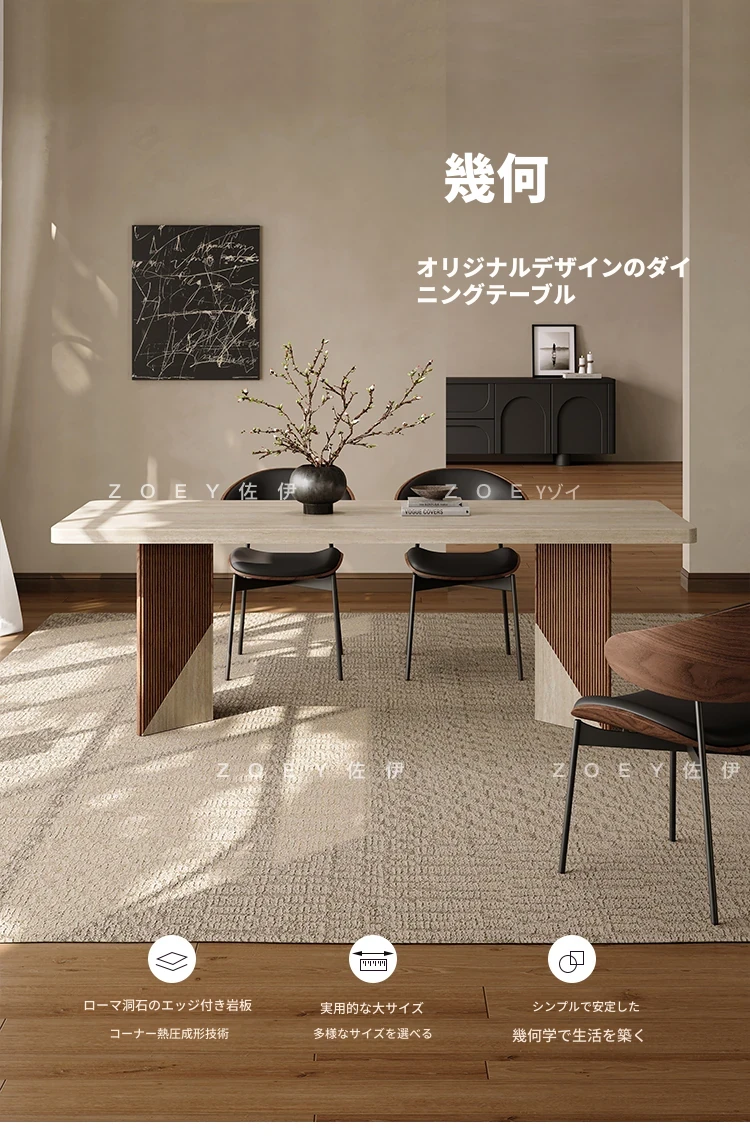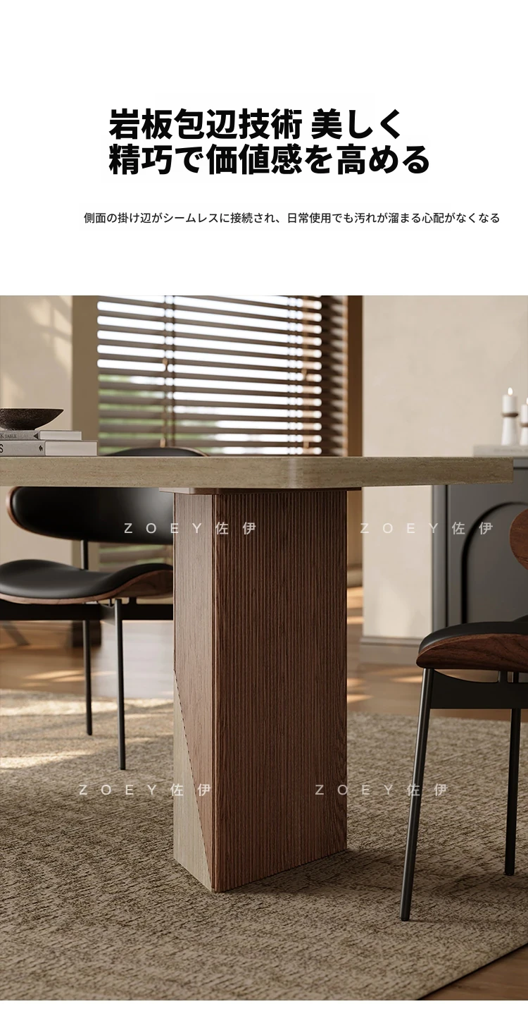 中古風洞石風デザインの高級感あふれる実木製ロングテーブル&チェアセット - 和の侘び寂びを感じるレトロスタイルダイニングテーブル
