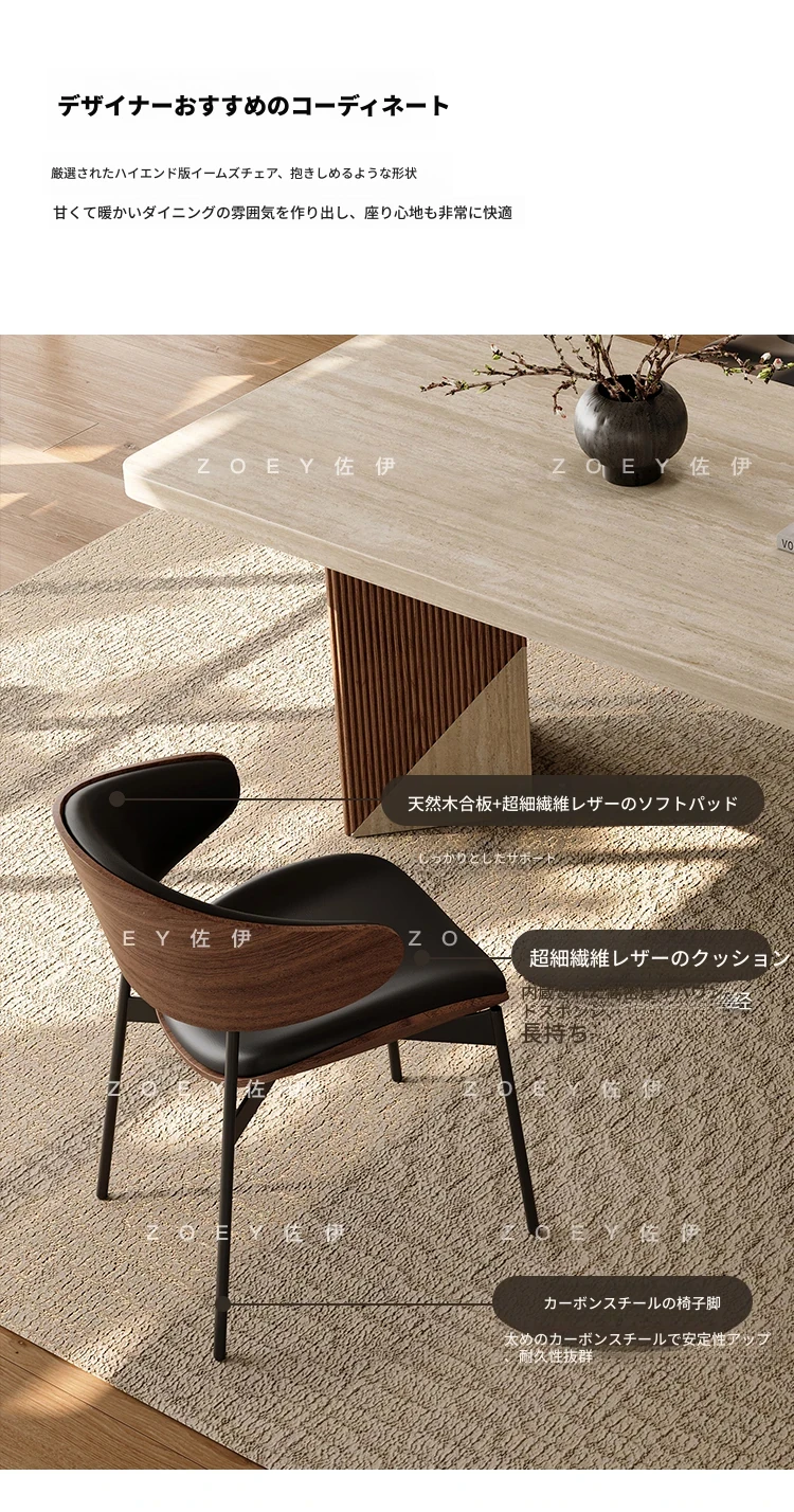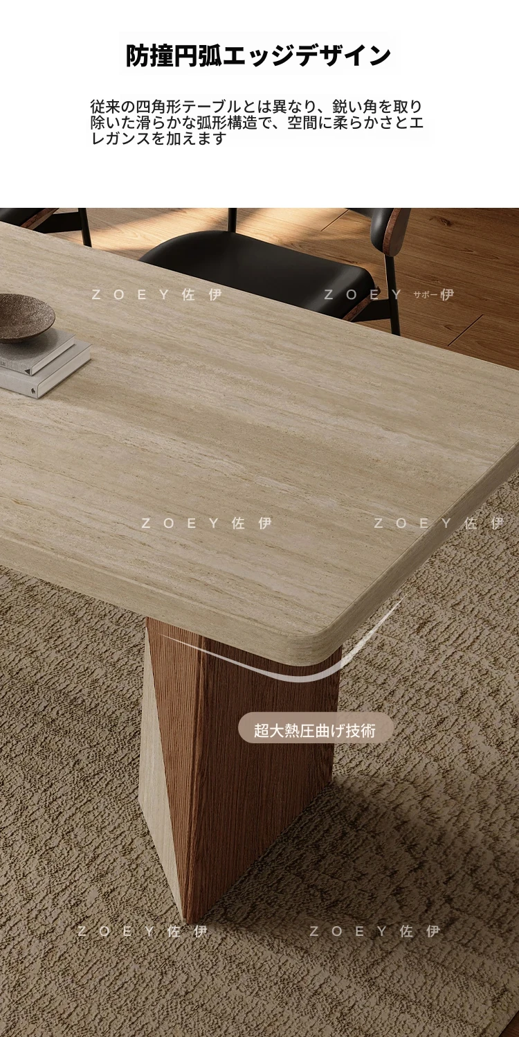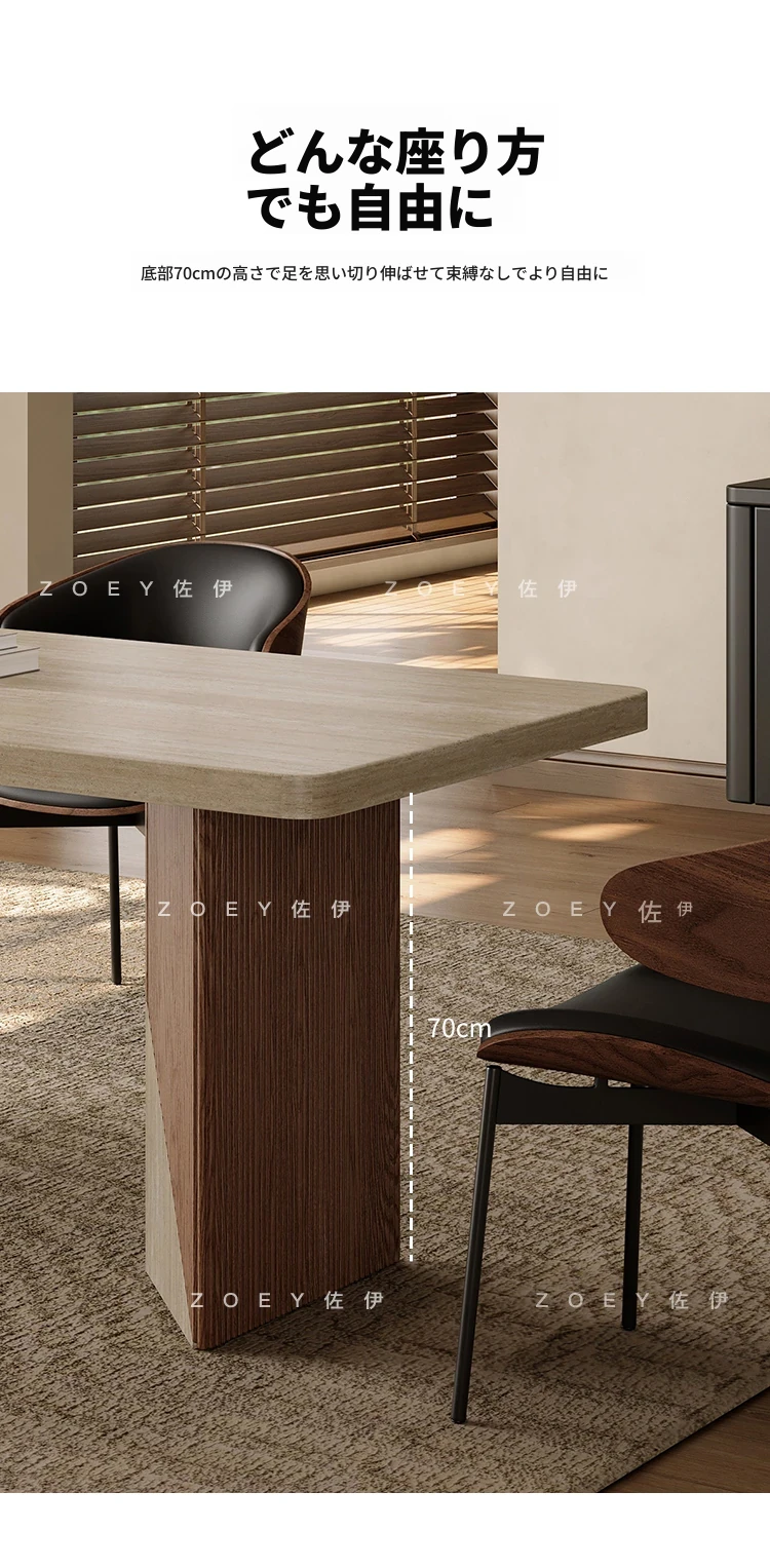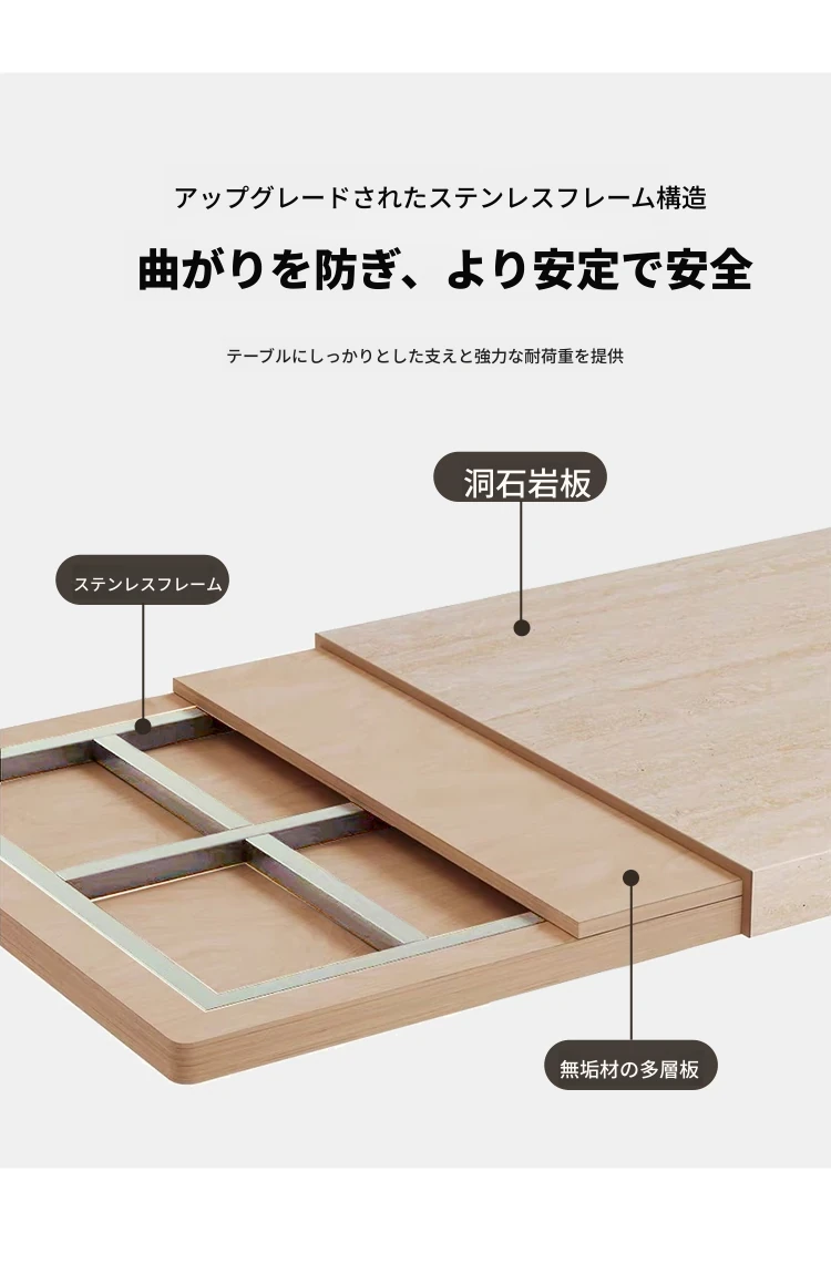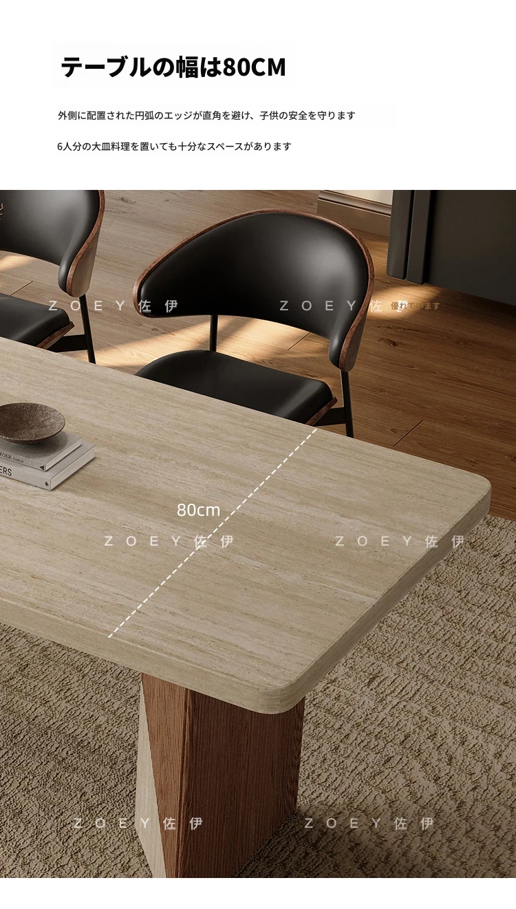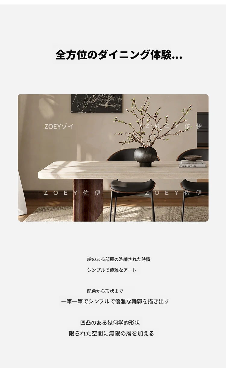 中古風洞石風デザインの高級感あふれる実木製ロングテーブル&チェアセット - 和の侘び寂びを感じるレトロスタイルダイニングテーブル