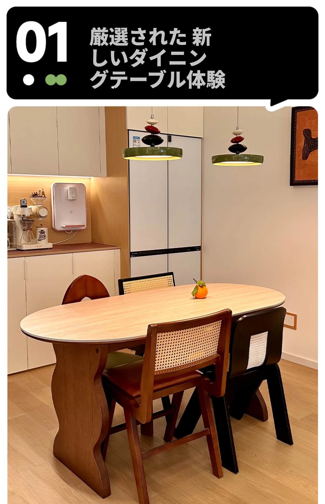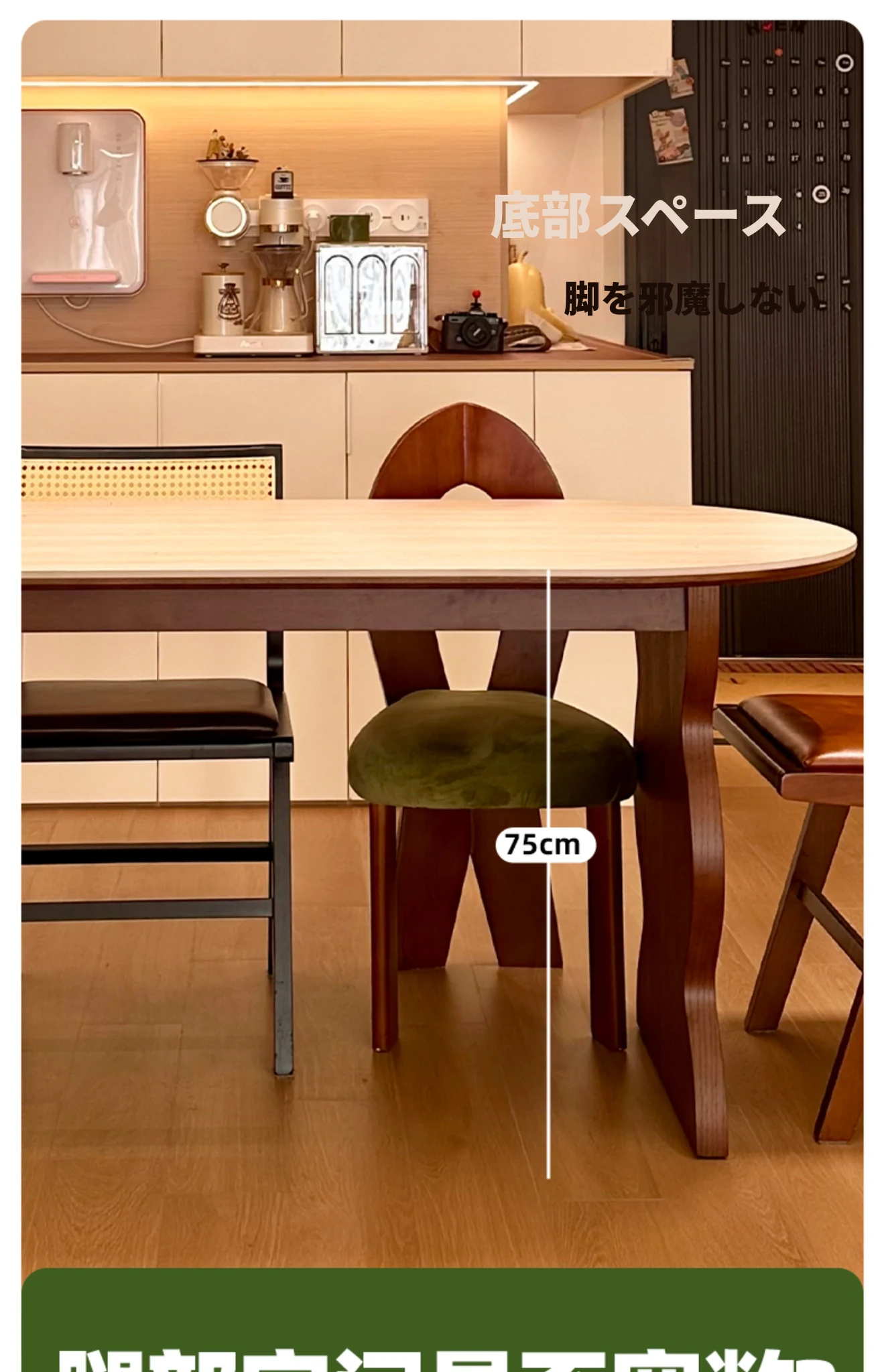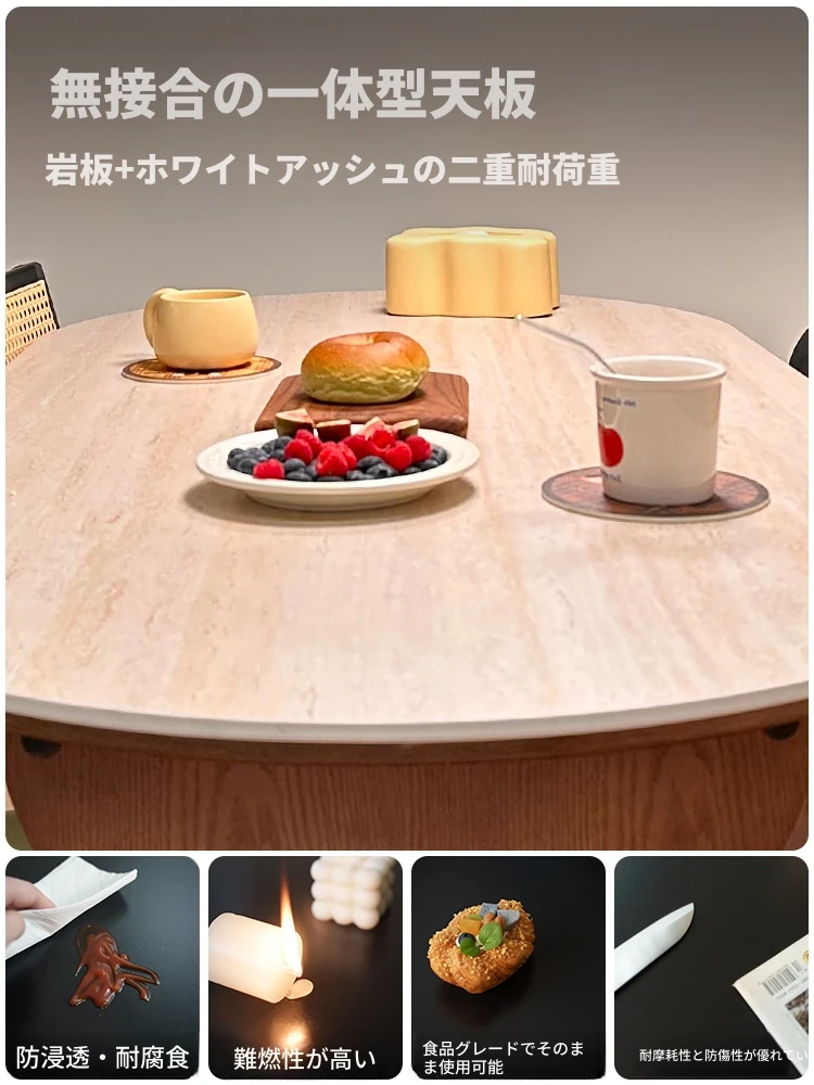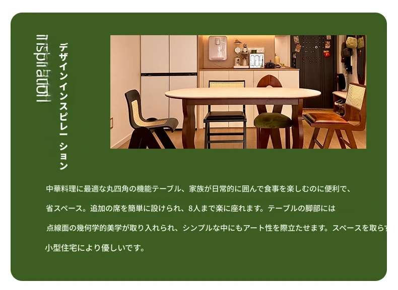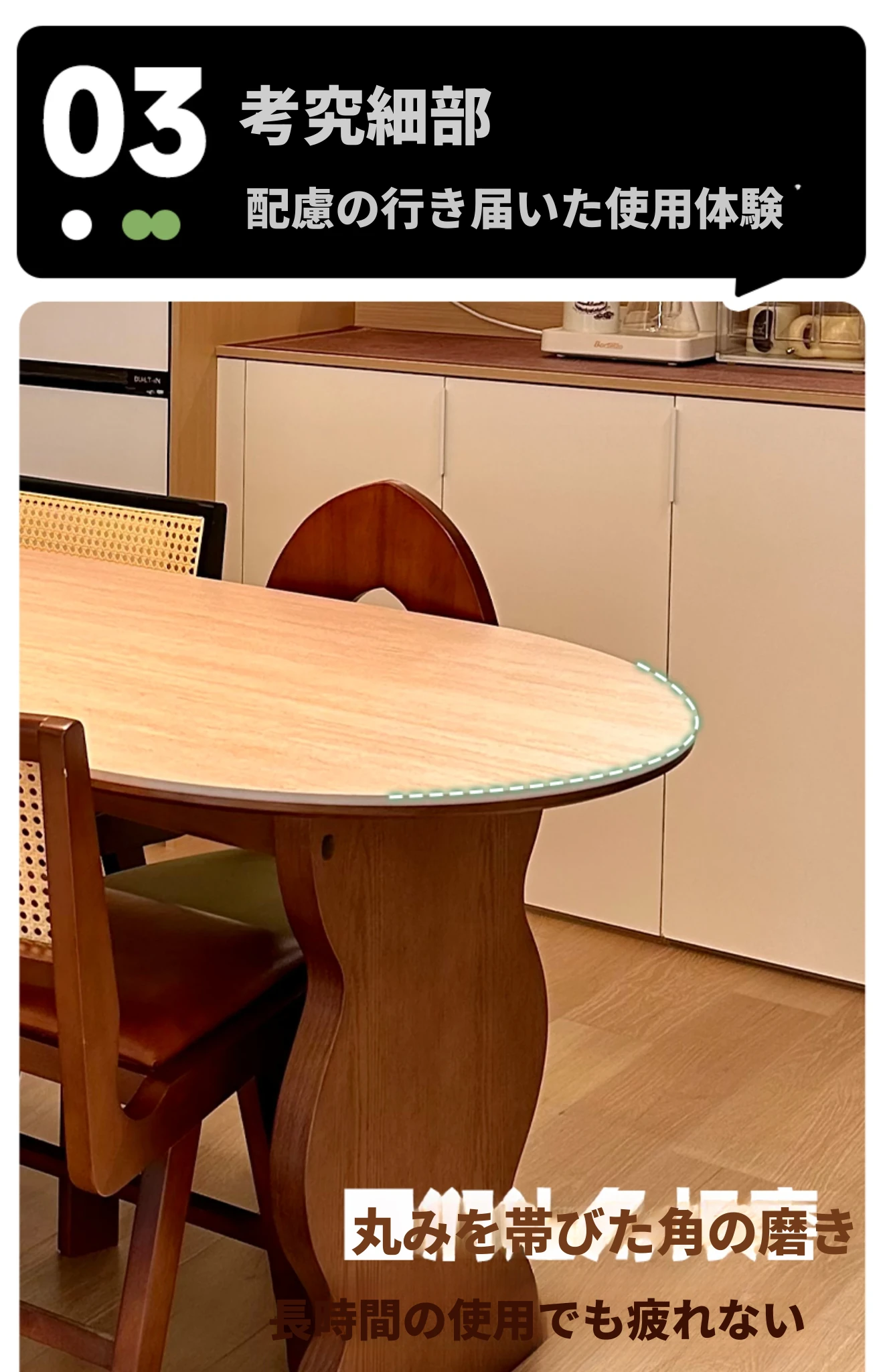ユキ洞石の楕円形無垢材ダイニングテーブル - アンティーク風の波紋デザイン、快適な椅子付き、家族向けの長方形テーブル。おしゃれで温かみのある食卓を演出します!